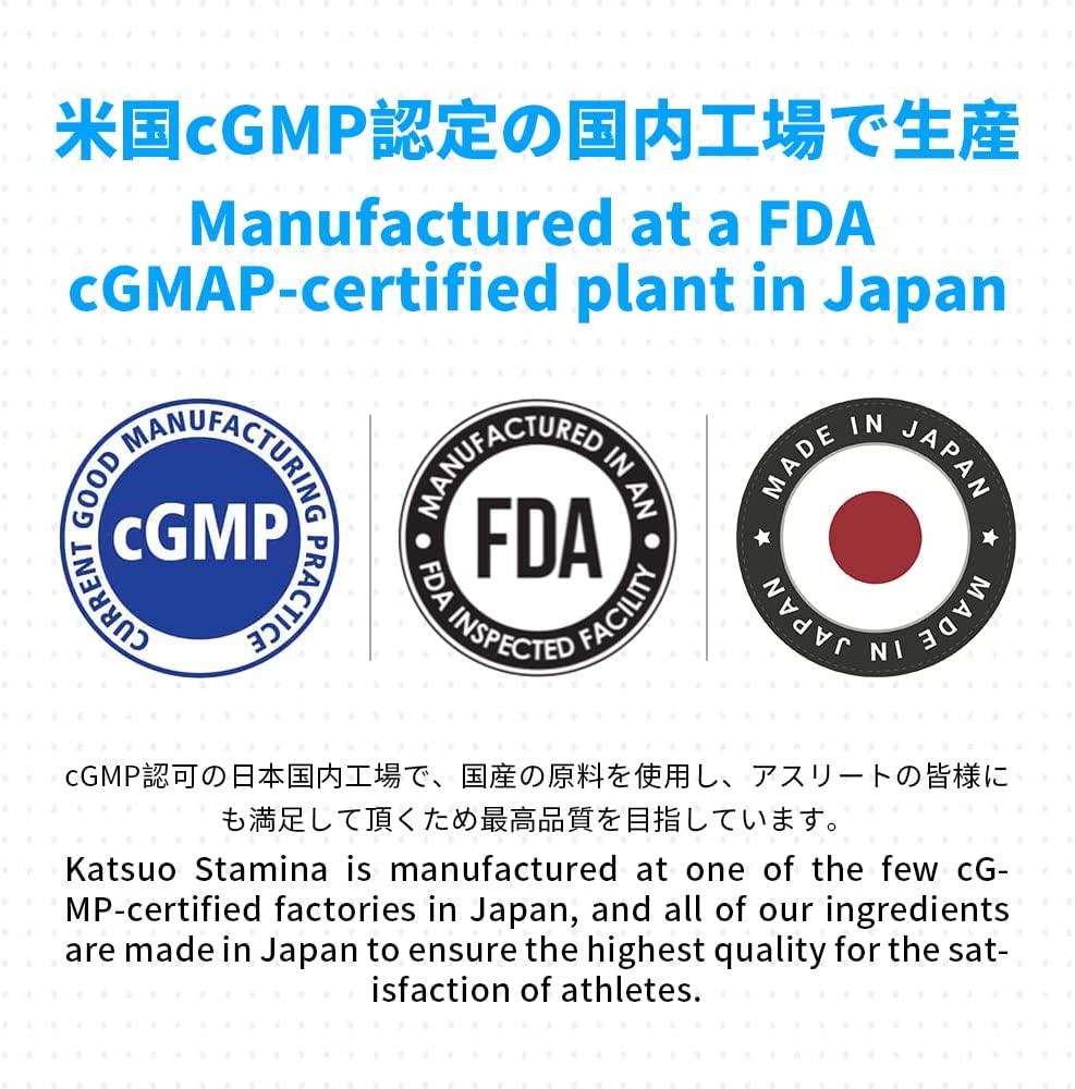 - In addition to production run testing, Informed Sport-certified products are also blind-sampled at the retail level up to four times annually. For more testing results please check Katsuo Stamina at www.informed-sport.com/certified-product-brands. It is an FDA registered facility, and cGMP standard.