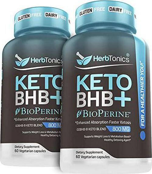 Keto BHB Diet Pills with BioPerine (2 Pack) for Enhanced Absorption Faster Ketosis Vegan Capsules Supplement for Women and Men