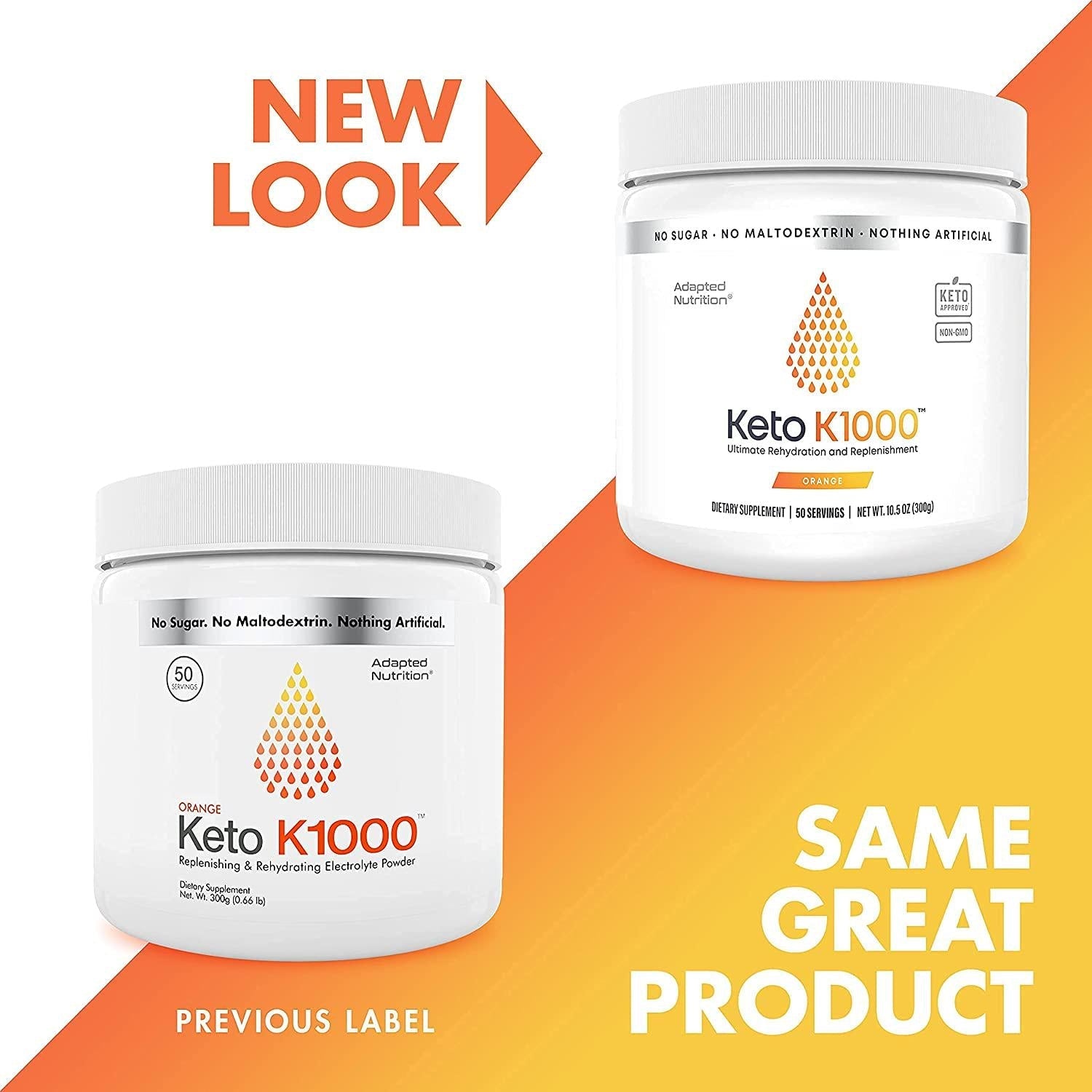 Keto K1000 Electrolyte Powder | Boost Energy and Beat Leg Cramps | No Maltodextrin or Sugar | Orange, Lighter Stevia Taste | 50 Servings