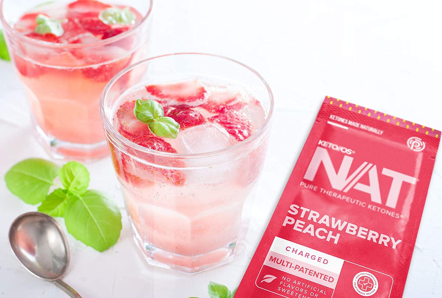 Keto//OS NATÂ Strawberry Peach Keto Supplements Charged - Exogenous Ketones - BHB Salts Ketogenic Supplement for Workout Energy Boost for Men and Women (20 Count)
