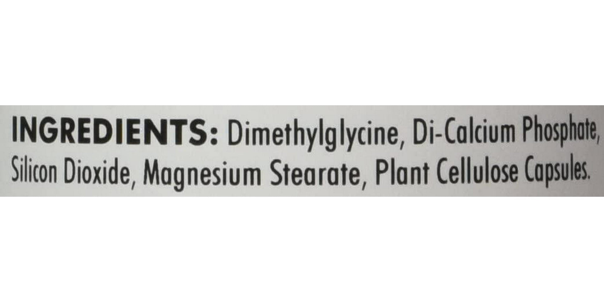 DMG Max Strength 300 mg 120 caps Dietary Supplement Dimethylglycine GF/CF & Hypoallergenic Supplement Facts Serving Size: 1 capsule Servings per Container: 120 Amount per Serving Dimethylglycine (HCL) 300 mg INGREDIENTS: Dimethylglycine Di-Calcium Phosphate Silicon Dioxide Magnesium Stearate Plant Cellulose Capsules. SUGGESTED USE: One capsule in the morning or as directed by a physician. FREE OF: Sugar starch soy wheat casein gluten milk egg corn preservatives yeast gelatin fish tree nuts peanuts flavorings or colorings. IMPORTANT: STORE IN A COOL DRY PLACE AND TIGHTLY CAPPED. KEEP OUT OF THE REACH OF CHILDREN. All purchases subject to MAP policy compliance