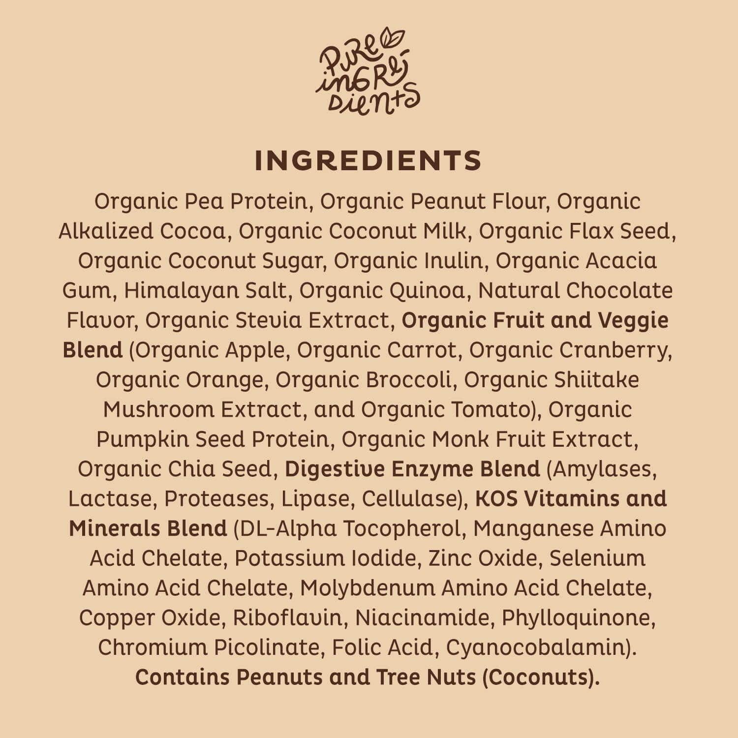 KOS Organic Plant Based Protein Powder, Chocolate Peanut Butter - Delicious Vegan Protein Powder - Keto Friendly, Gluten Free, Dairy Free and Soy Free - 1.3 Pounds, 15 Servings