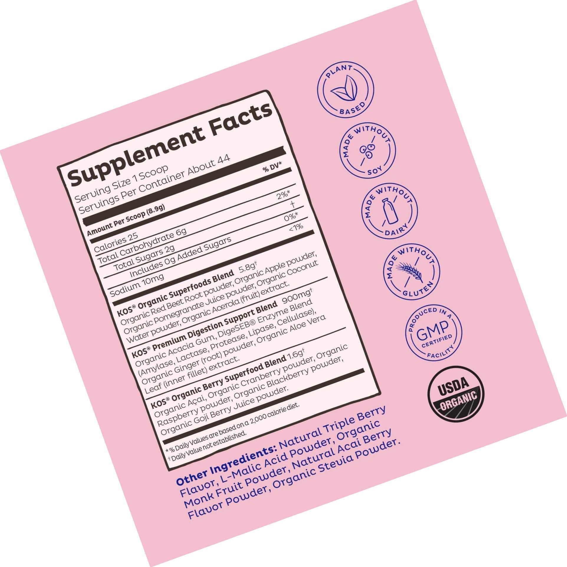 - Ingredients: Organic Red Beet Root Powder, Organic Apple Powder, Organic Pomegranate Juice Powder, Organic Coconut Water Powder, Organic Acerola Extract Powder, Organic Açaí, Organic Cranberry Powder, Organic Raspberry Powder, Organic Blackberry Powder, Organic Goji Berry Juice Powder, Organic Acacia Fiber (powder), DigeSEB (Amylases, Lactase, Proteases, Lipase, Cellulase), Organic Ginger, Aloe Vera ExtractSee more
