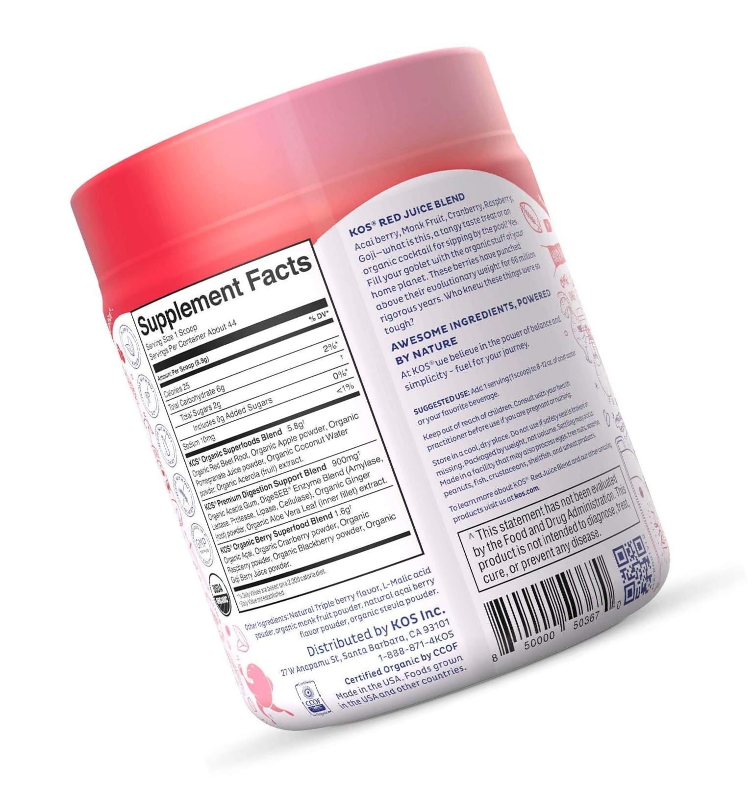 KOS Organic Reds Blend | Amazing Tasting Red Juice Powder Energy Blend | Hydrating, Antioxidant Rich, Resveratrol, Superfood Ingredients, 378.4g, 44 Servings