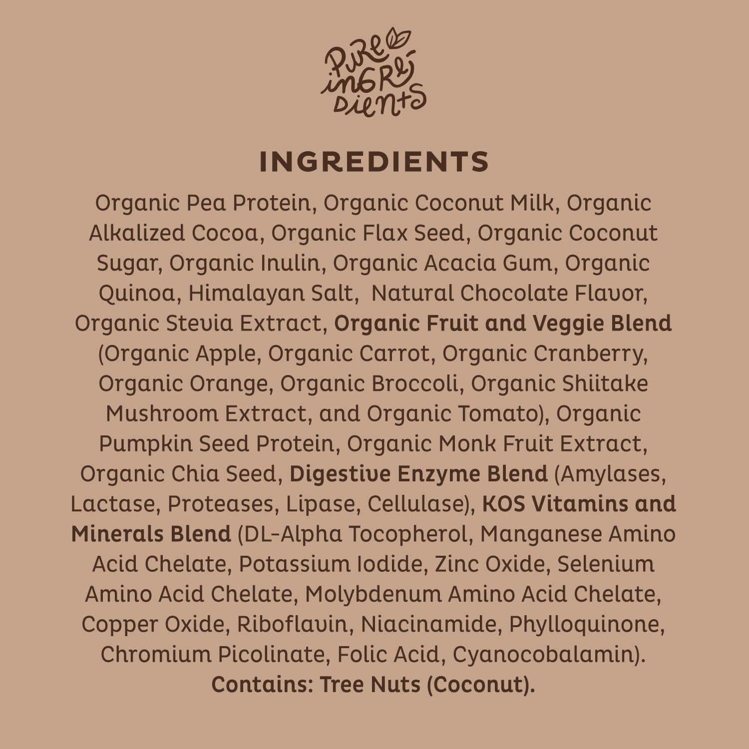 KOS Vegan Protein Powder, Chocolate - Low Carb Pea Protein Blend - Plant Based Protein Powder - USDA Organic, Keto, Gluten, Soy and Dairy Free - Meal Replacement for Women and Men