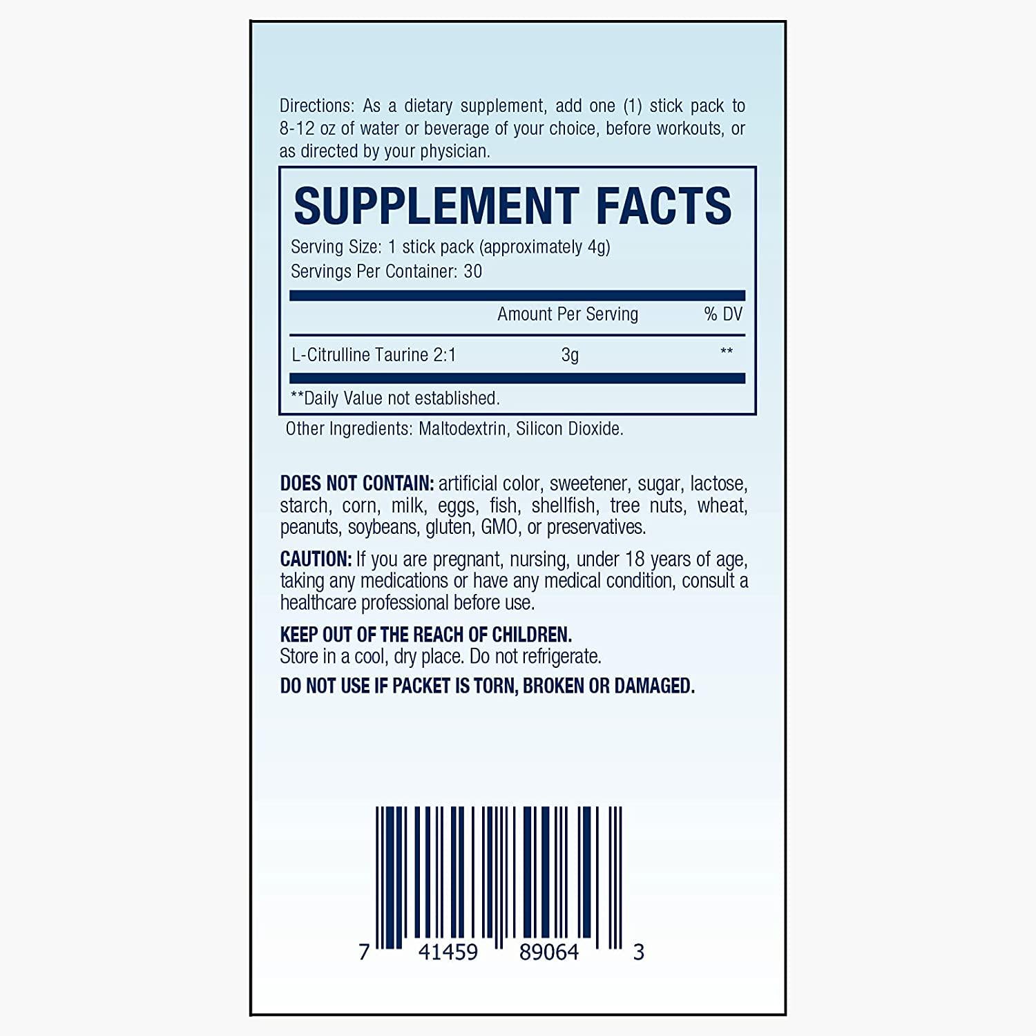 - Contains 4 grams of L-citrulline taurine per serving (113 servings)