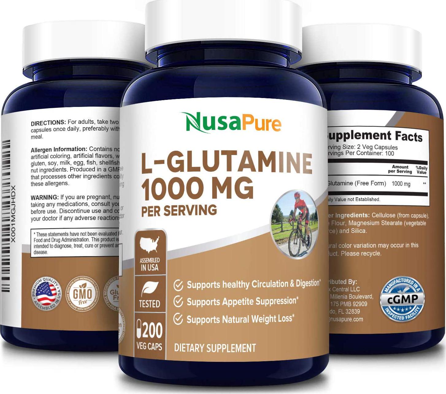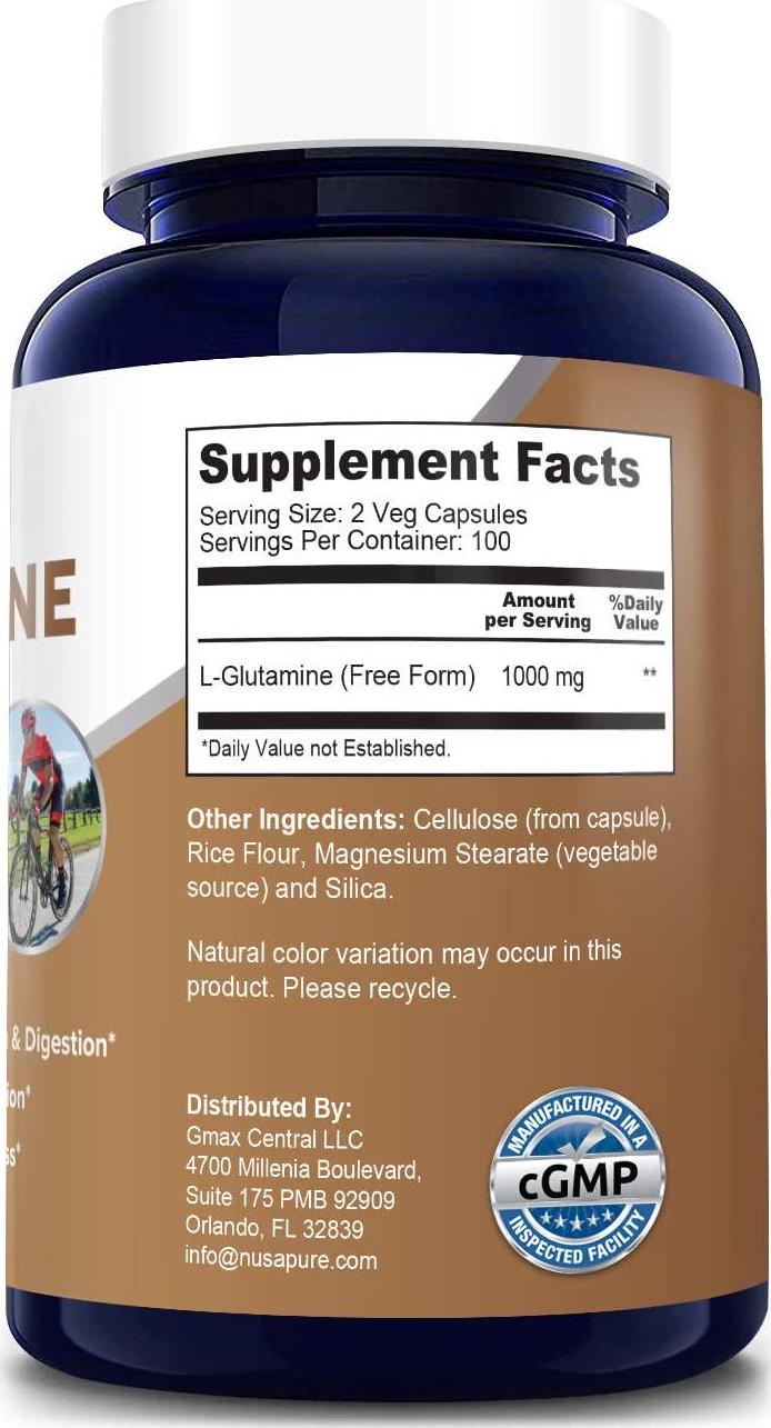 1000 mg, gluten free, l-glutamine, natural, non-gmo, usa, vegetarian