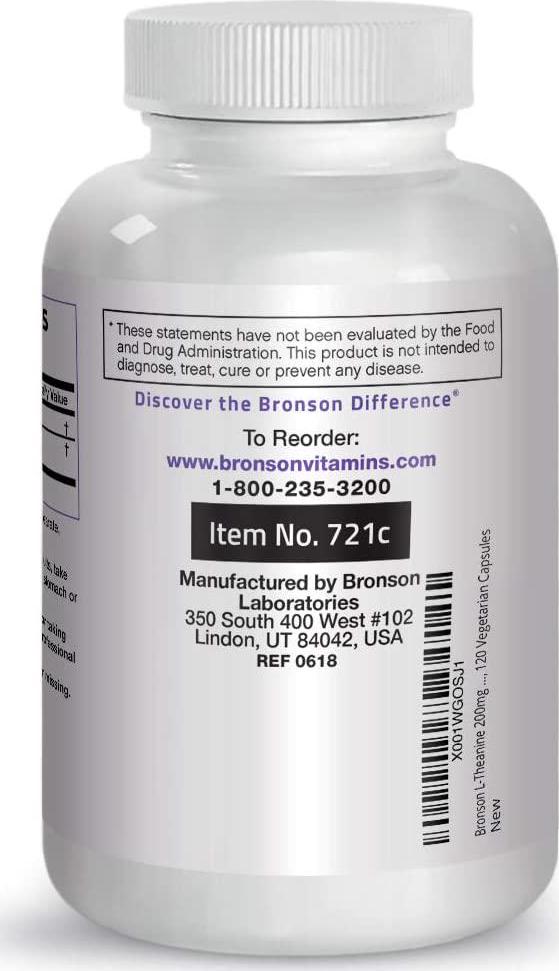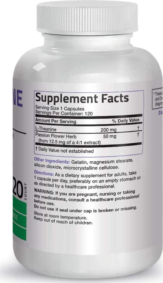 L-Theanine 200mg (Double-Strength) with Passion Flower Herb - Reducing Stress and Promoting Relaxation Without Sedation - Non GMO Formula, 120 Vegetarian Capsules
