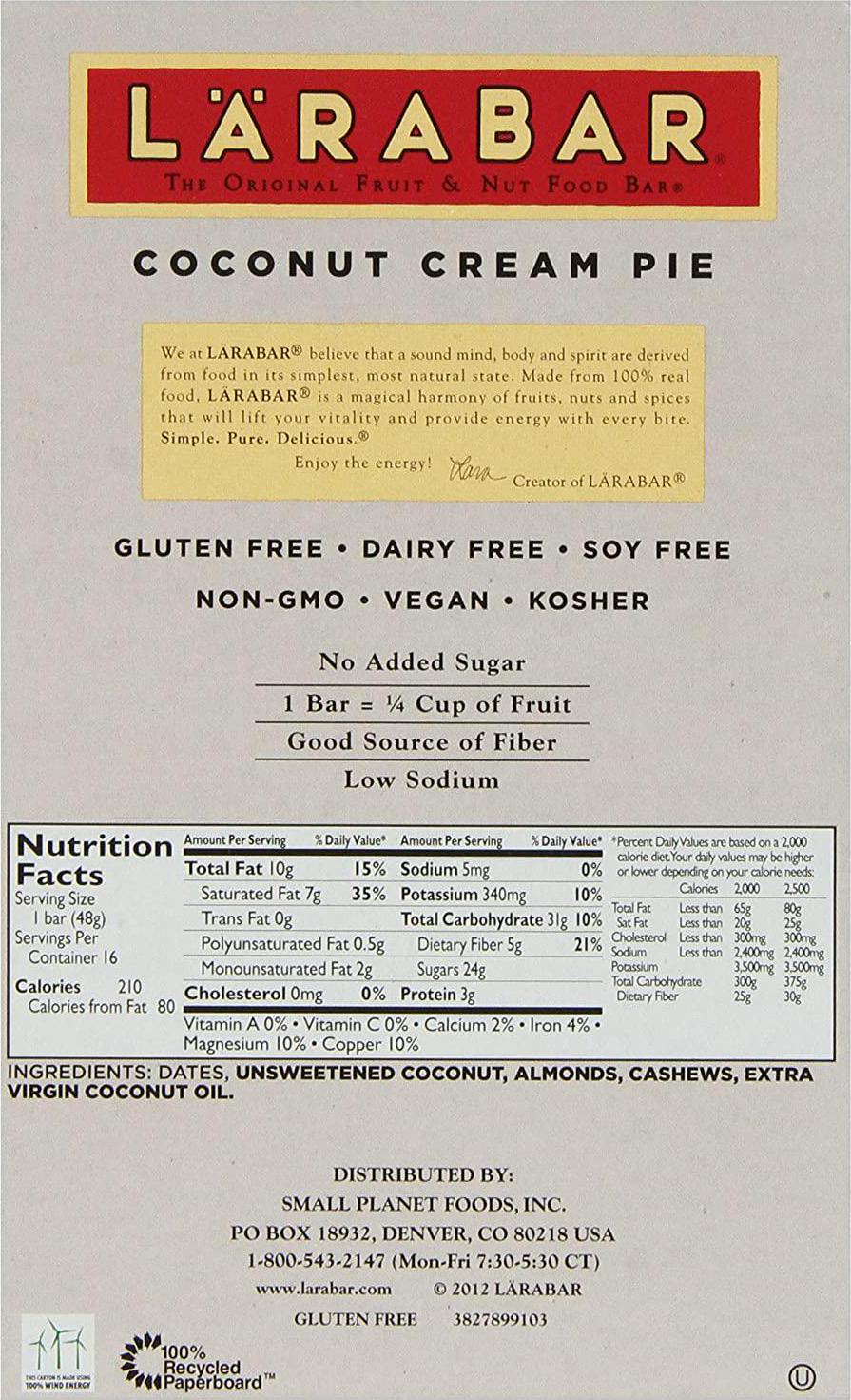 Larabar, Bar Coconut Cream Pie, 1.7 Ounce, 16 Count (Pack of 2)