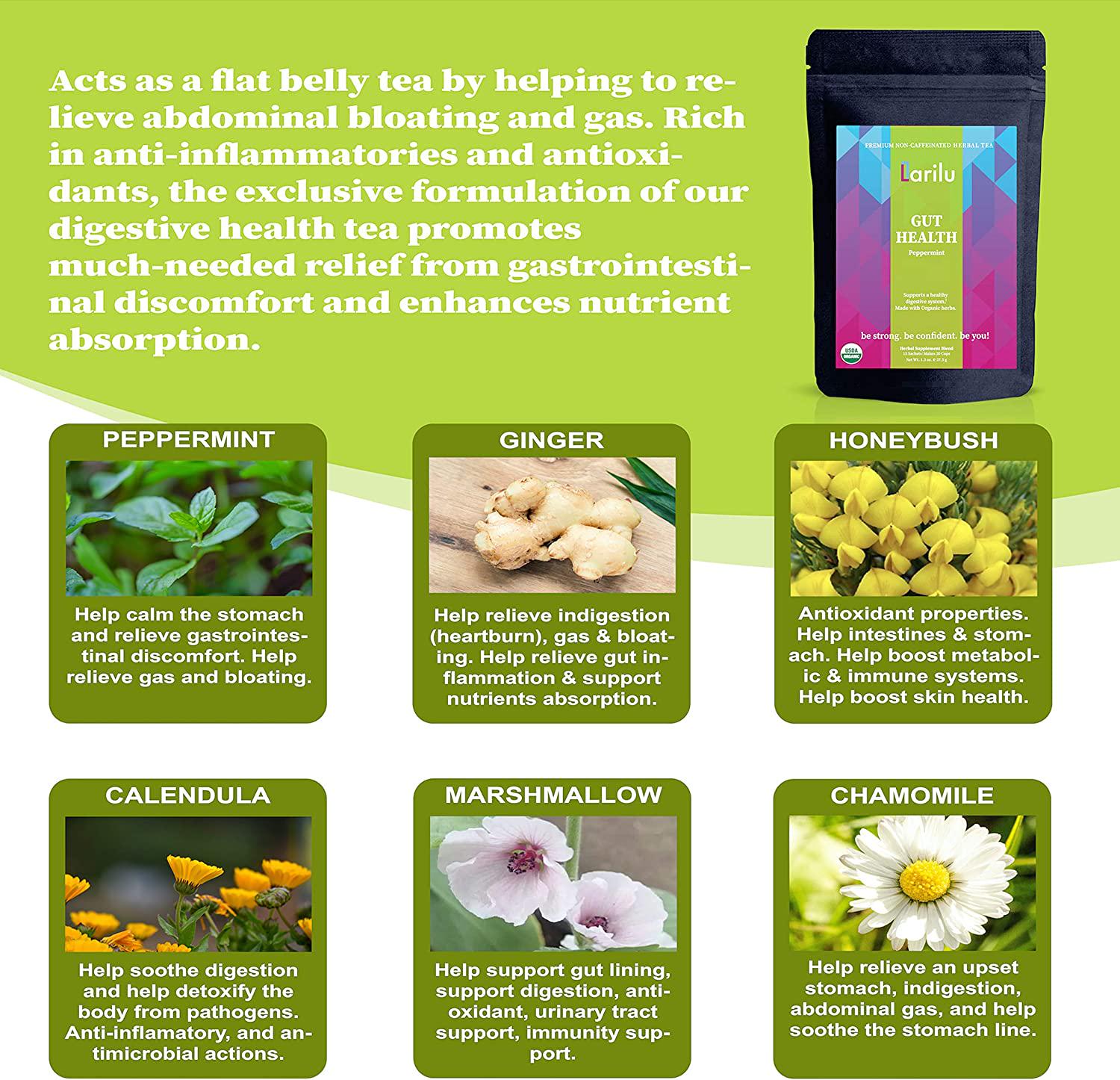 Larilu Gut Health Detox Tea - Digestive Tea Helps Improve Digestion, Reduce Tummy Bloating, Gas, Natural Detox Support - Organic Herbal Tea with Peppermint, Ginger, Fennel, Caffeine Free (30 Cups)