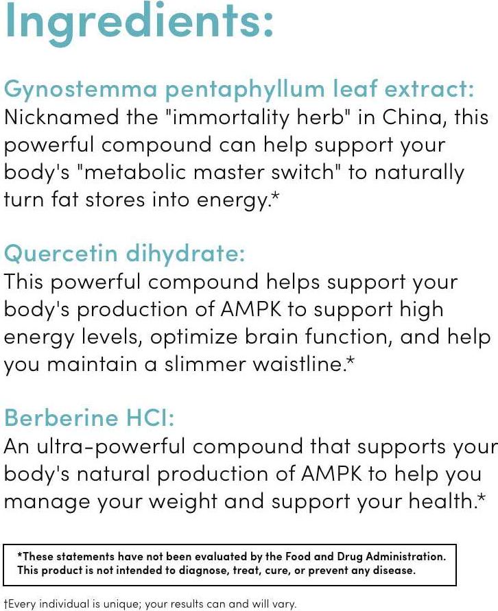 - This formula works by using natural compounds to help activate AMPK which tells your body to stop storing fat and start converting it into clean, usable fuel. This can lead to more energy, fewer cravings, and a slimmer waistline.*
