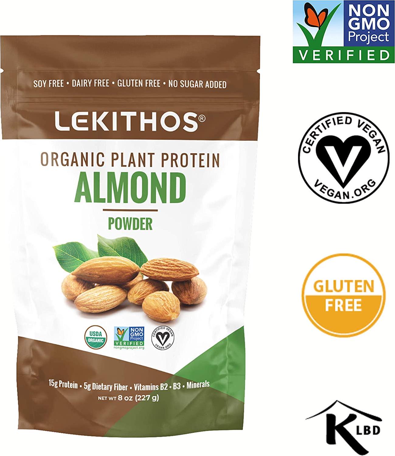 Lekithos Certified Organic Almond Protein Powder - 8 oz -Single Ingredient - Non-GMO Project Verified