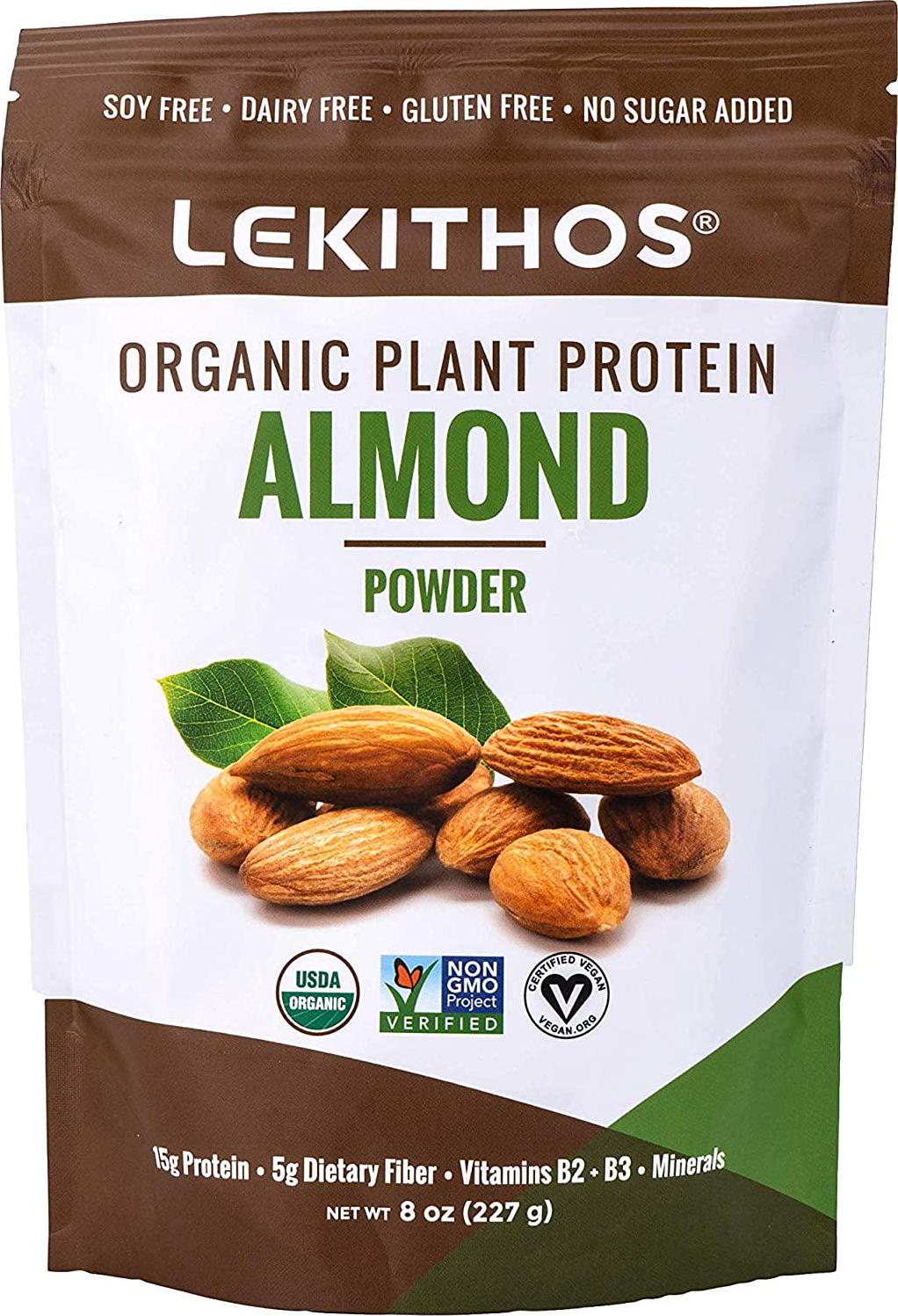 8oz, dairy-free, gluten-free, lekithos, non-gmo, organic almond protein powder, usa