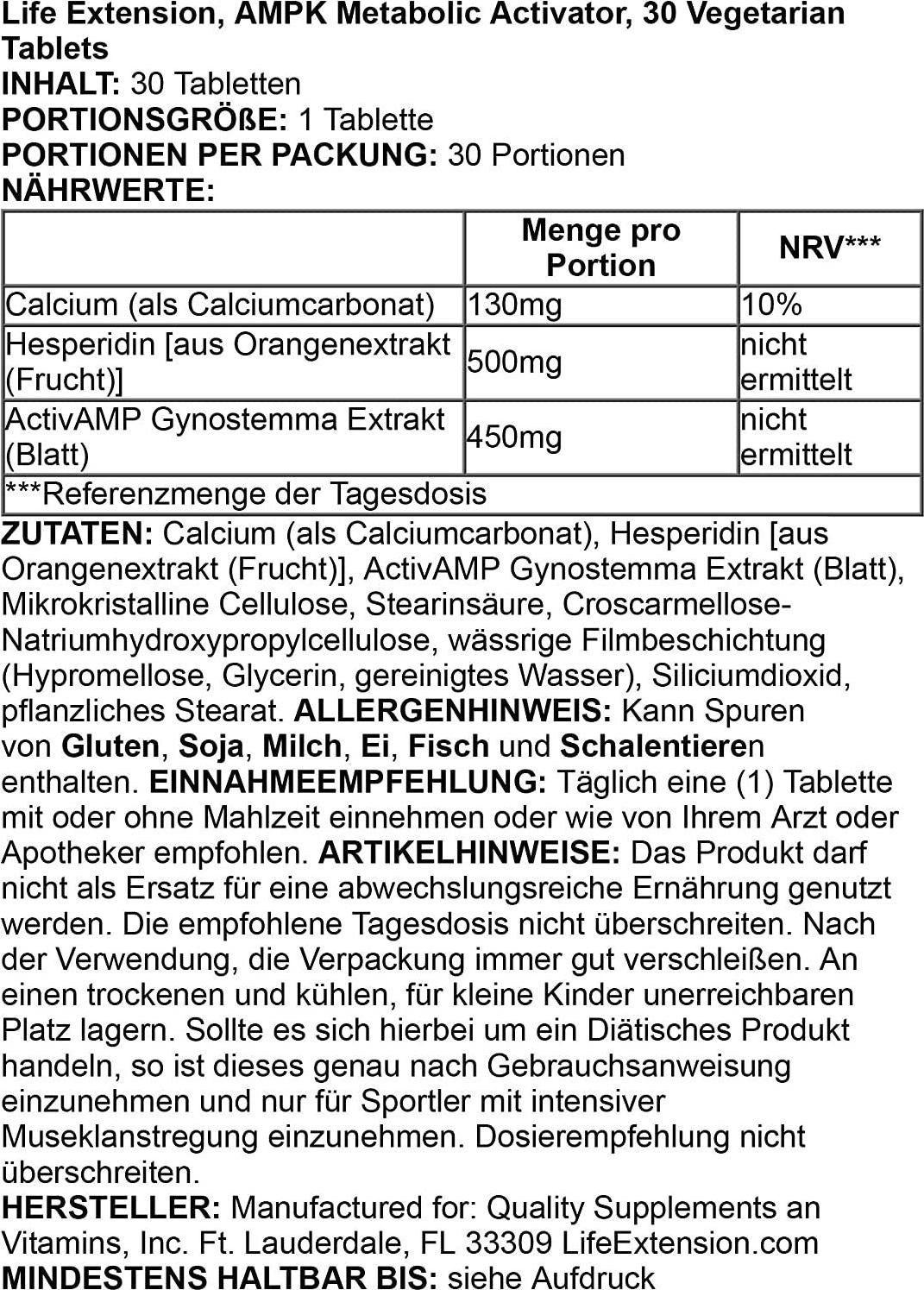 Life Extension AMPK Metabolic Activator - For Weight Management, Healthy Cellular Metabolism - Helps Burn Fat - Gluten free, Non-GMO, 30 Vegetarian Tablets