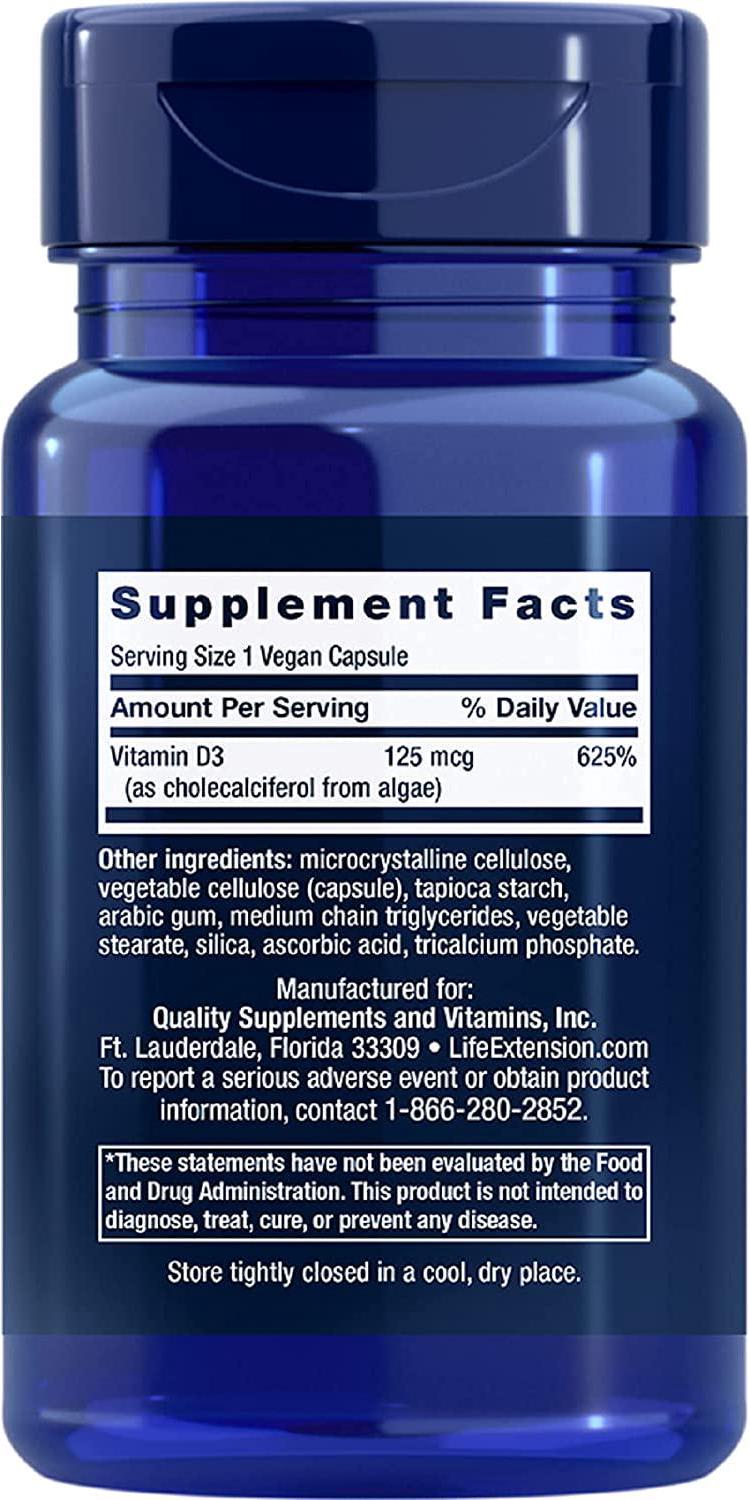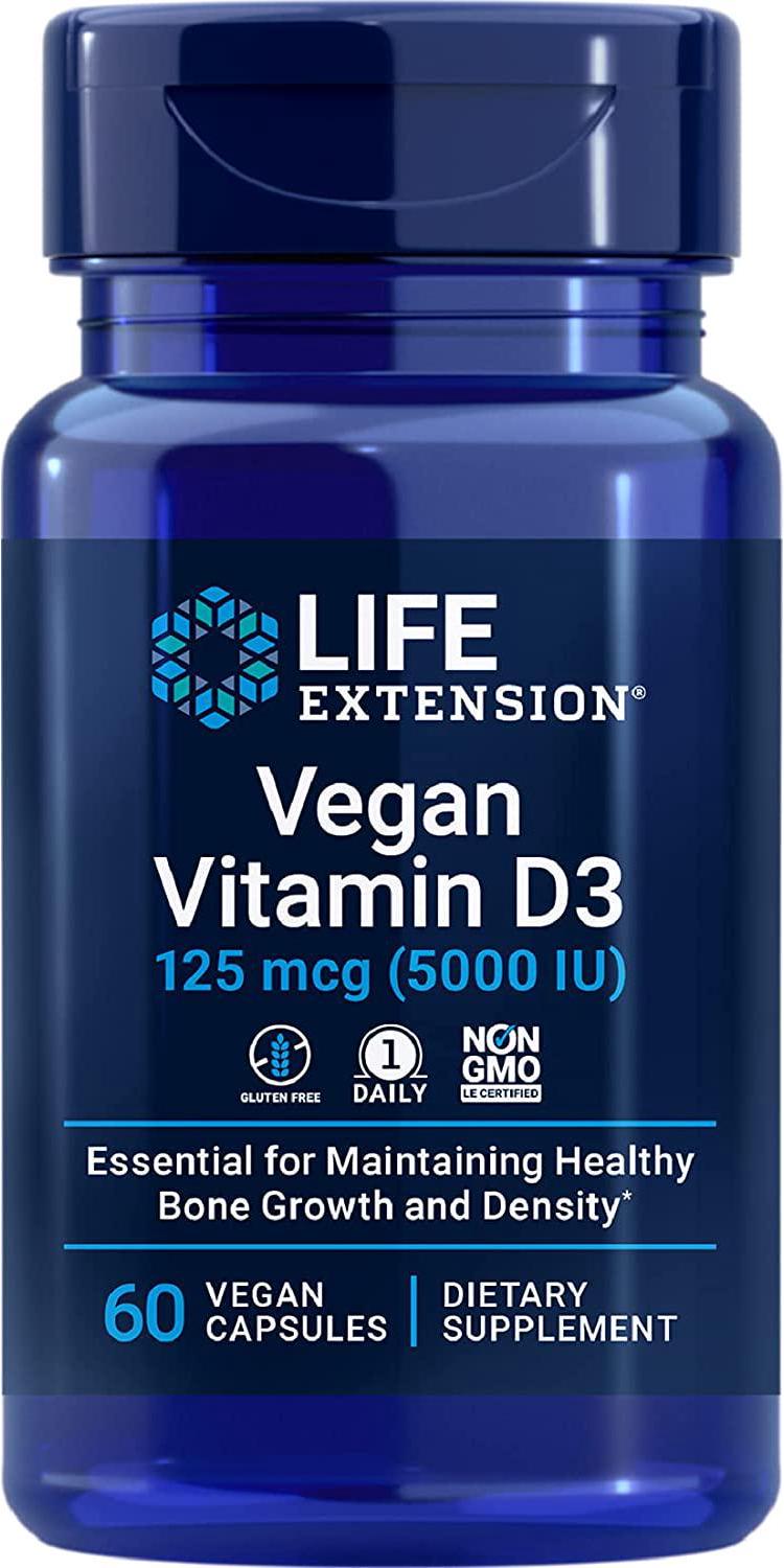 Life Extension Vegan Vitamin D3, Joint Health - Bone Health - Immune Support- Non-GMO, Gluten Free-60 Count