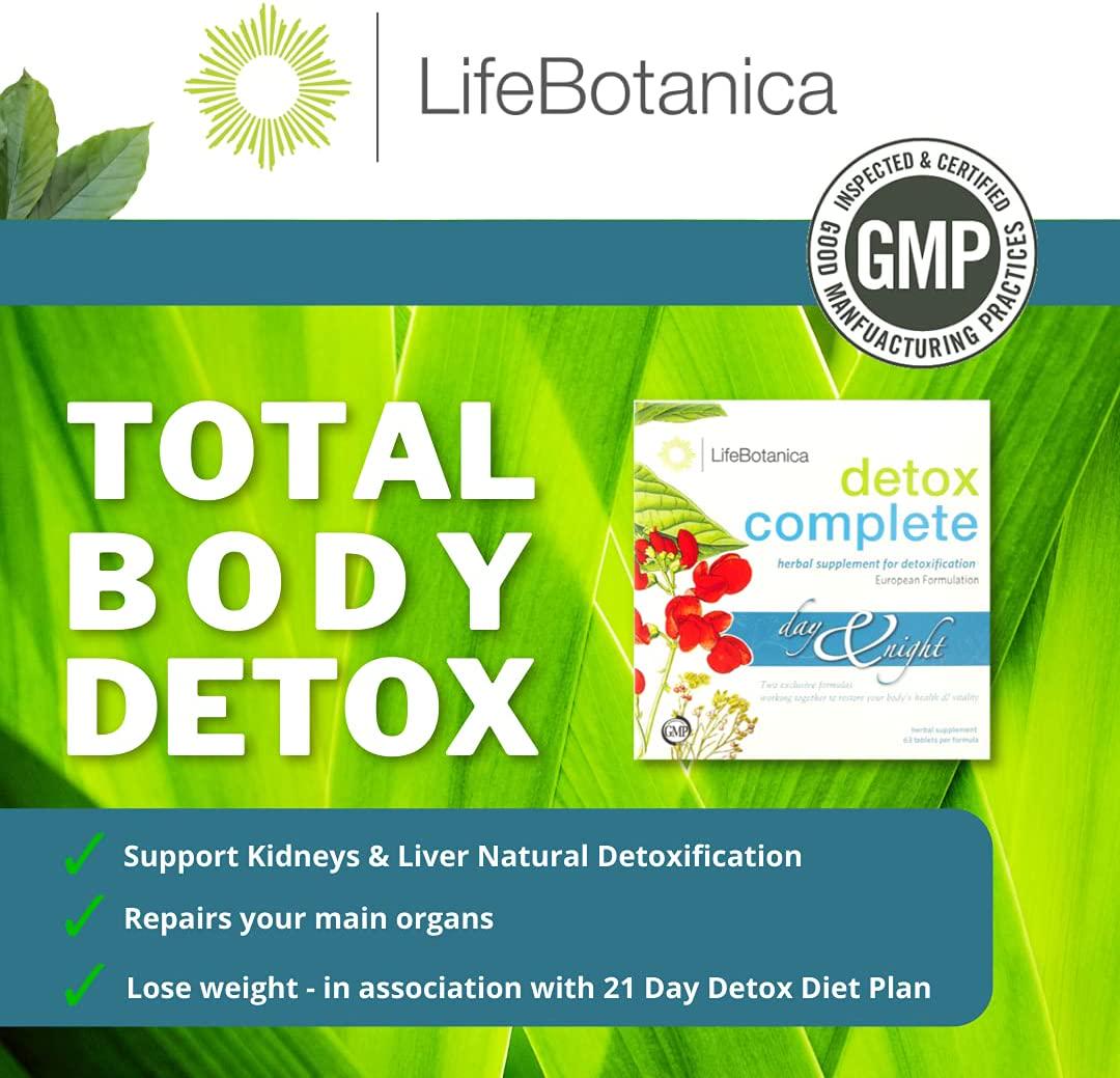 LifeBotanica Detox Complete Kidney & Liver Cleanse, Detox Complete Day & Night - 21 Days Total Body Cleansing & Detoxification - 1 Bottle (63 Tablets) Per Formula