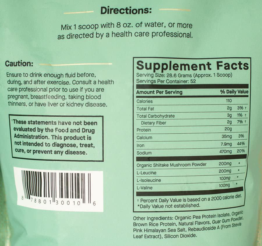 - Complete Plant Protein - Enjoy 20g of tasty vegan protein powder per serving. Combining pea protein and organic brown rice protein makes a complete protein with all 9 essential amino acids you need