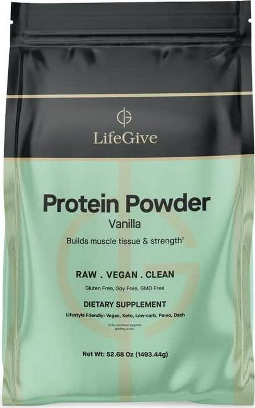 LifeGive Protein Powder, Vanilla, 20g Plant Based Protein Per Serving, Vegan Protein Powder for Women / Men with Pea Protein, Organic Brown Rice Protein and BCAAs, No Gluten Soy or Added Sugar, 3.3lbs