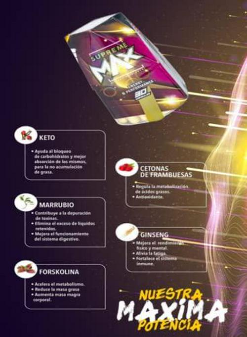 - Special Ingredients: Forskolina, Keto, Gingseng, Marrubio, Cetona de Frambuesas