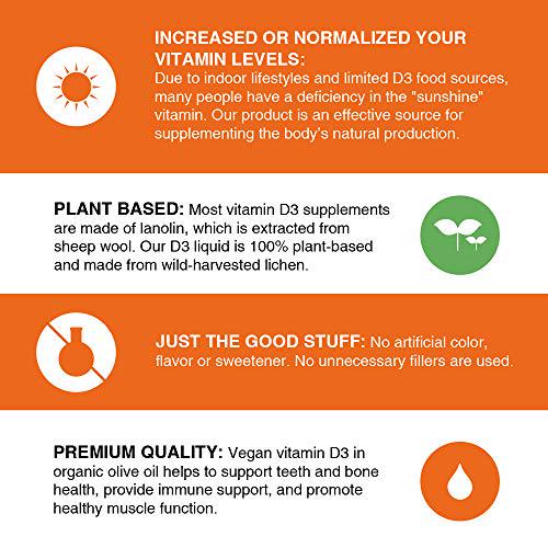 Lovita Vegan Vitamin D3 Liquid, 400IU per Drop, 30ml, 1000 Servings Vitamin D3 is known as the 'sunshine vitamin' because your body uses sunlight to produce it naturally. Winter seasons and too much time indoors can give you a Vitamin D3 deficiency. Take this 400 IU supplement to help correct it.