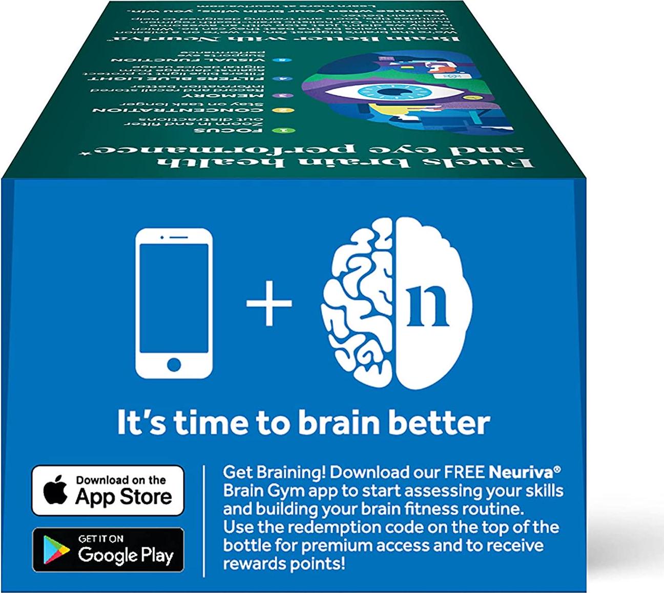 - RECOMMENDED BY AMERICA’S FAVORITE NEUROSCIENTIST: Not all brain supplements are created equal. Neuriva is backed by real science and recommended by Mayim Bialik, Ph.D. (Real Neuroscientist, Actress & Actual Neuriva User)..GET DIGITAL WITH NEURIVA APP: Get Braining! Download our NEURIVA BRAIN GYM app from the App Store or Google Play to start assessing your skills and building your brain fitness routine. Recently updated with a soothing spa section to help calm the mind..DIRECTIONS FOR USE: Adults (18 years and older) take one (1) capsule daily with a meal.