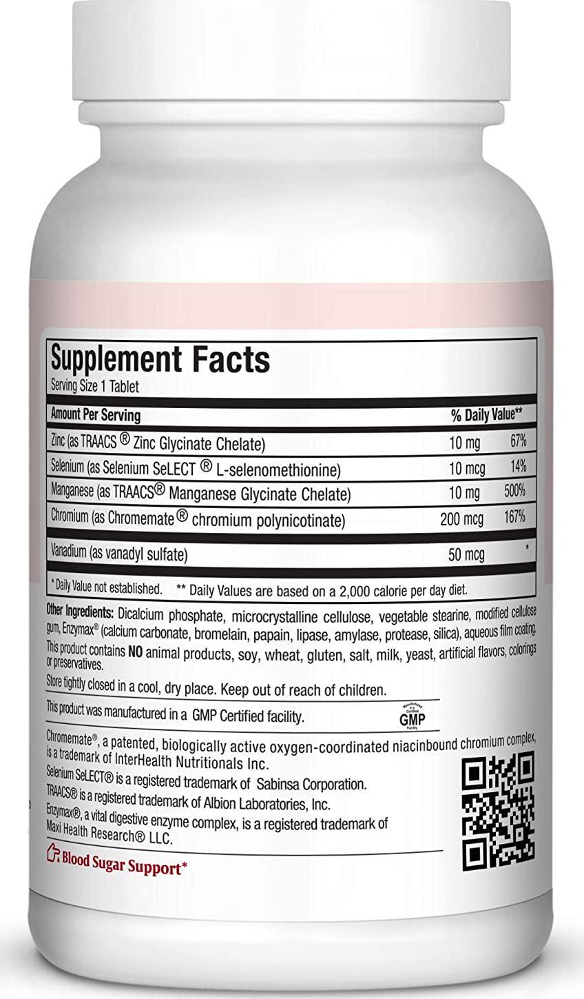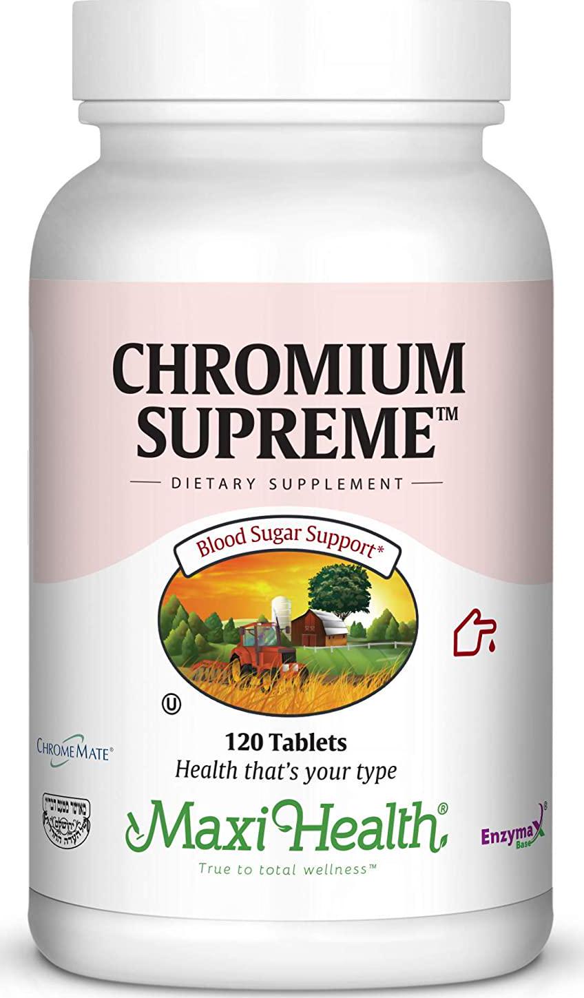Chromium Supreme is the unique formulation that combines chromium with vanadium, selenium, zinc and manganese for the support of normal sugar metabolism.We use ChromeMate brand chromium because of its high biological activity called Glucose Tolerance Factor. ChromeMate brand chromium GTF is an organic chromium complex that contains niacin as well as cysteine and other nutrients. It is a trace mineral that supports the healthy metabolism of proteins, carbohydrates and fats.Selenium (as Selenium SeLECT L-selenomethionine) supports actions such as stimulating glucose uptake and regulating metabolic processes including glycolysis, gluconeogenesis, fatty acid synthesis, and the pentose phosphate pathway.Zinc (as TRAACS Zinc Glycinate Chelate) is a component in support of insulin. It is required for DNA synthesis, critical to cellular replication organ and tissue cells involved in maintaining healthy blood sugar levels.Manganese (as TRAACS Manganese Glycinate Chelate) supports utilization of glucose for energy and normal pancreas functioning.Vanadyl sulfate is a compound of vanadium and can that supports reduction of glucose in the blood stream and support delivery of glucose to the cells where needed for energy.To support energy metabolism and blood sugar regulation, try Chromium Supreme from Maxi-Health Research!Our uncompromising commitment to quality begins with selecting the finest raw materials from across the globe, to high standard manufacturing practices in GMP Certified Facilities, in the USA.All Maxi Health products are certified kosher, under the Orthodox Union (OU) and the Udvari Kashruth (UK). Legal Disclaimer: These statements have not been evaluated by the FDA. This Product is not intended to diagnose, treat, cure or prevent any disease.