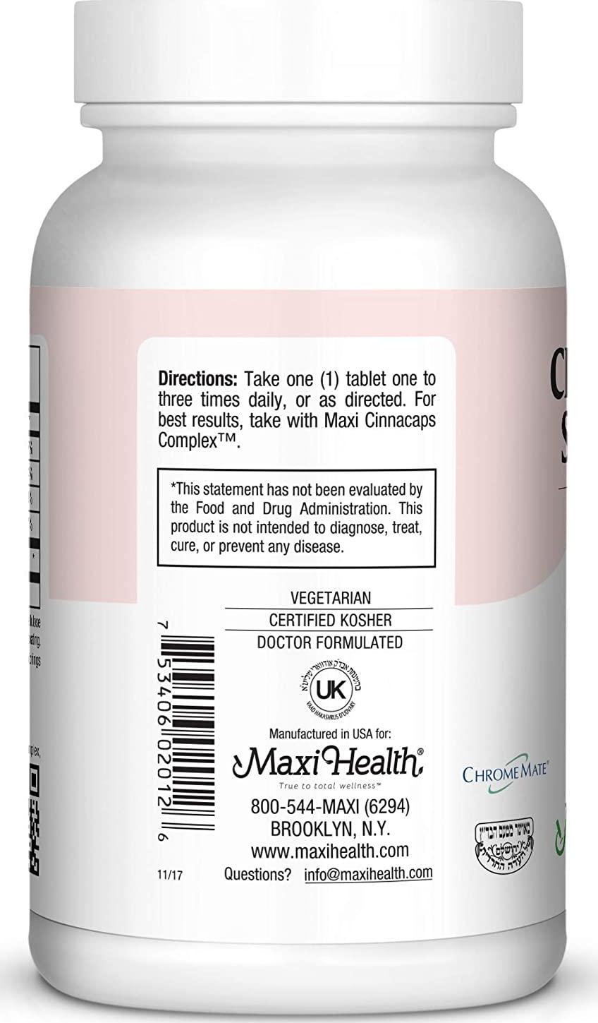 Maxi Health Chromium Polynicotinate Supreme - 200 mcg - Blood Sugar Formula - 120 Tablets - Kosher
