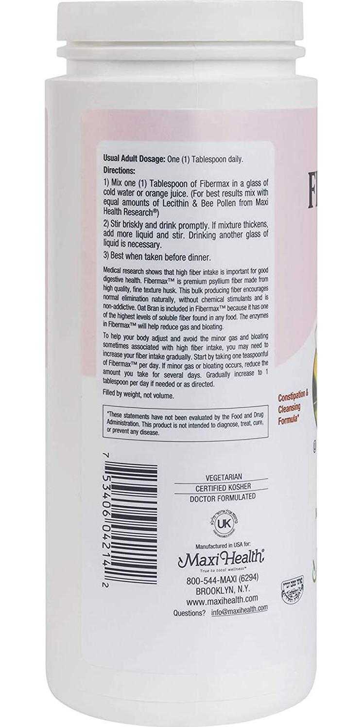 Fibermax powder by Maxi Health is an effective, safe, and healthy way to encourage regularity and or get the fiber you need for a healthy diet. Just mix it with water.