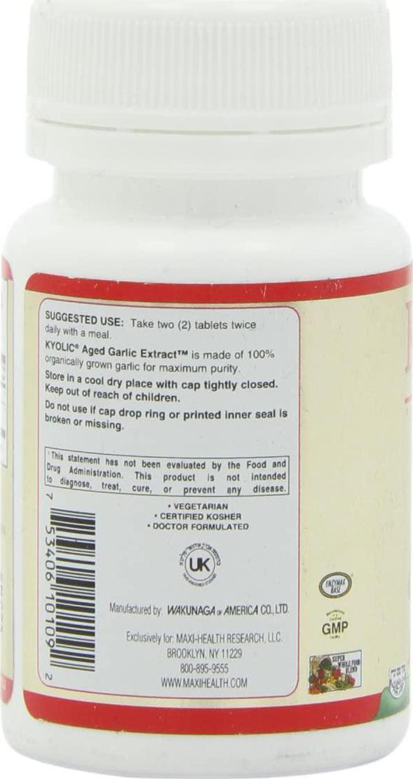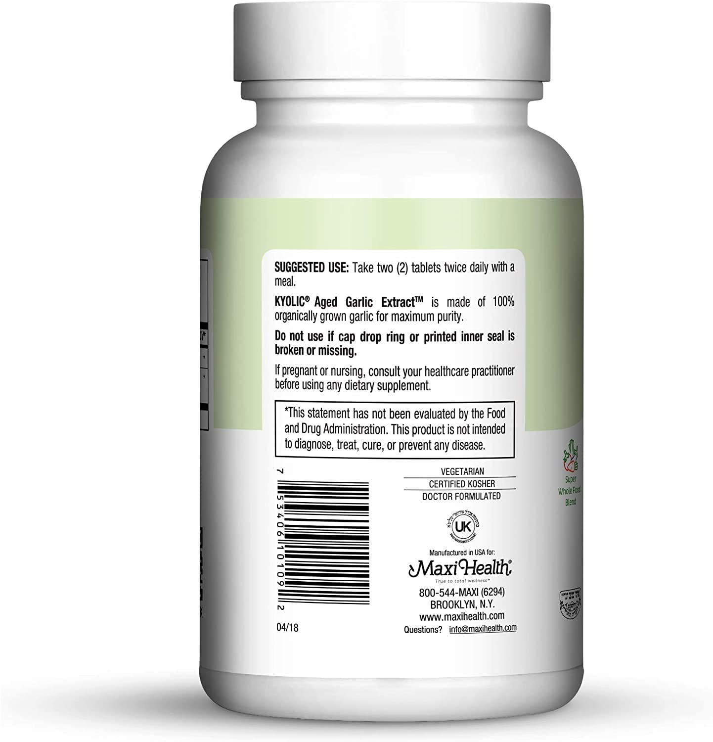 The exclusive aging process used eliminates garlic odor and harsh side effects. Moreover, it contains various antioxidant properties. Kyolic whole clove garlic is grown in specially prepared, organically rich, and uncontaminated soil. Furthermore, no pesticides are used in growing Kyolic Garlic. Kyolic is the first garlic supplement to offer standardized levels of SAC (S-Allyl Cysteine). SAC represents many important, valuable, stable and safe principles of garlic. Get Kyolic Aged Garlic Extract Tablets, only from Maxi Health! Our uncompromising commitment to quality begins with selecting the finest raw materials from across the globe, to high standard manufacturing practices in GMP Certified