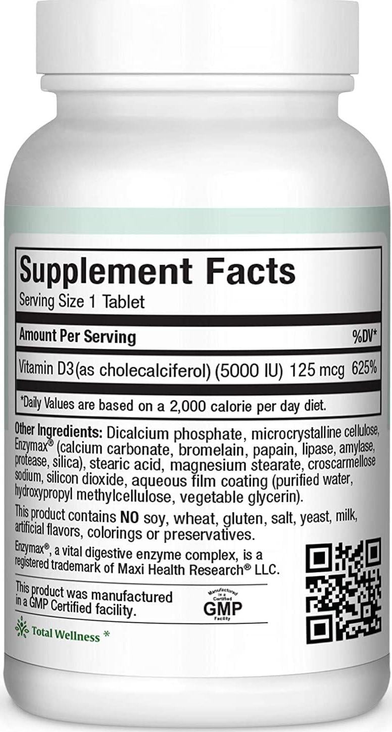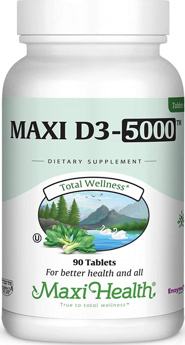 Maxi Health Natural Vitamin D3 - 5000 IU - Nutrition Supplement - 90 Tablets - Kosher