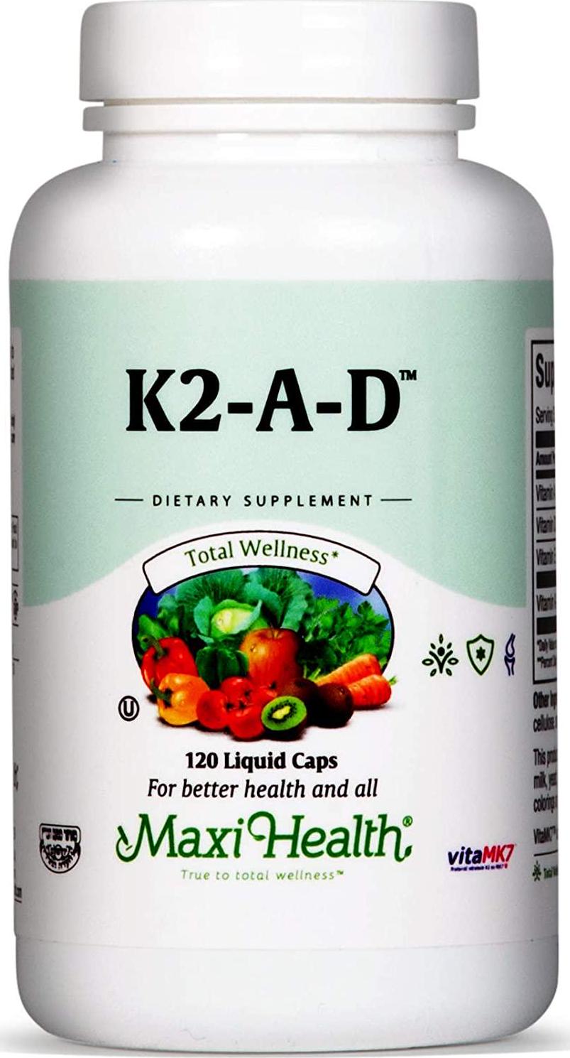K2-A-D is a unique formulation for those who want to take their vitamin K2,D3, A, and vitamin E together. Not only is it more convenient but we offer you the best delivery method for these 4 vitamins....in an easy to swallow one Liquid Capsule with organic extra virgin olive oil. Not only that you can look forward to 100 mcg of Vitamin K2 as VitaMK7 Menaquinone-7. VitaMK7 is known for its bioavailability. We use 3000 IU of both vitamin D3 (as cholecalciferol) and vitamin A (as retinyl palmitate). All that nutrition in just one easy to swallow Liquid Caps. Now, it's up to you. Get your K2, A, D3 and Vitamin E the easy way, K2-A-D from your health partners at Maxi Health.