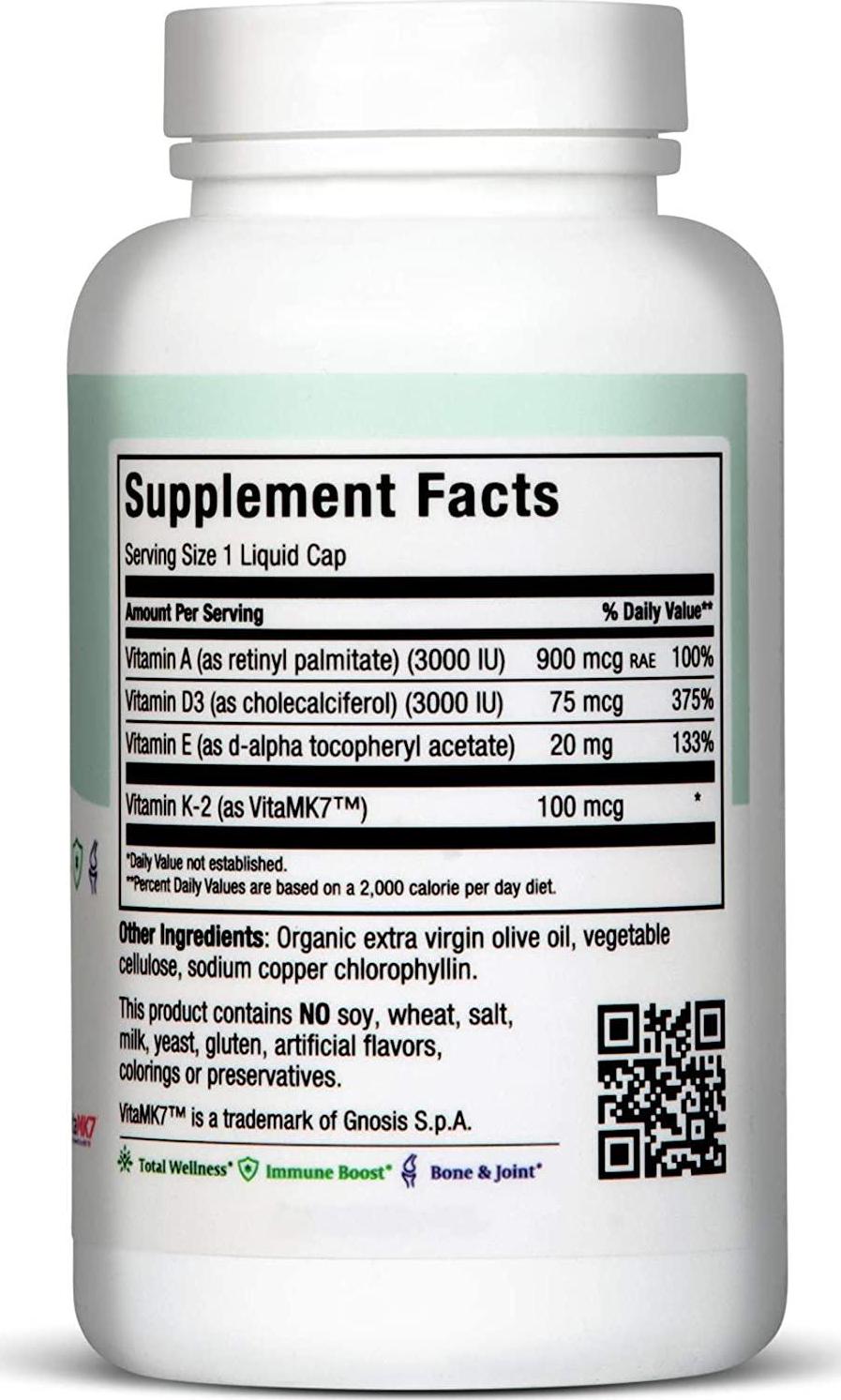 Maxi Vitamins K2, A, D3 and E Liquid Caps, 120 Count