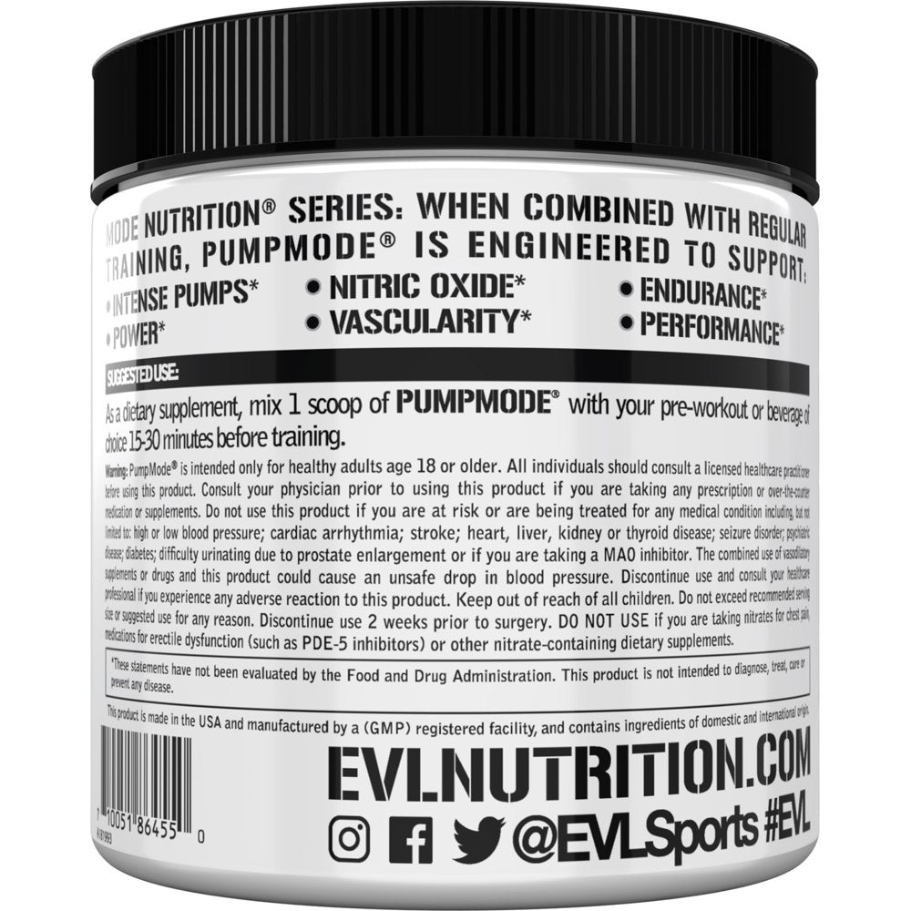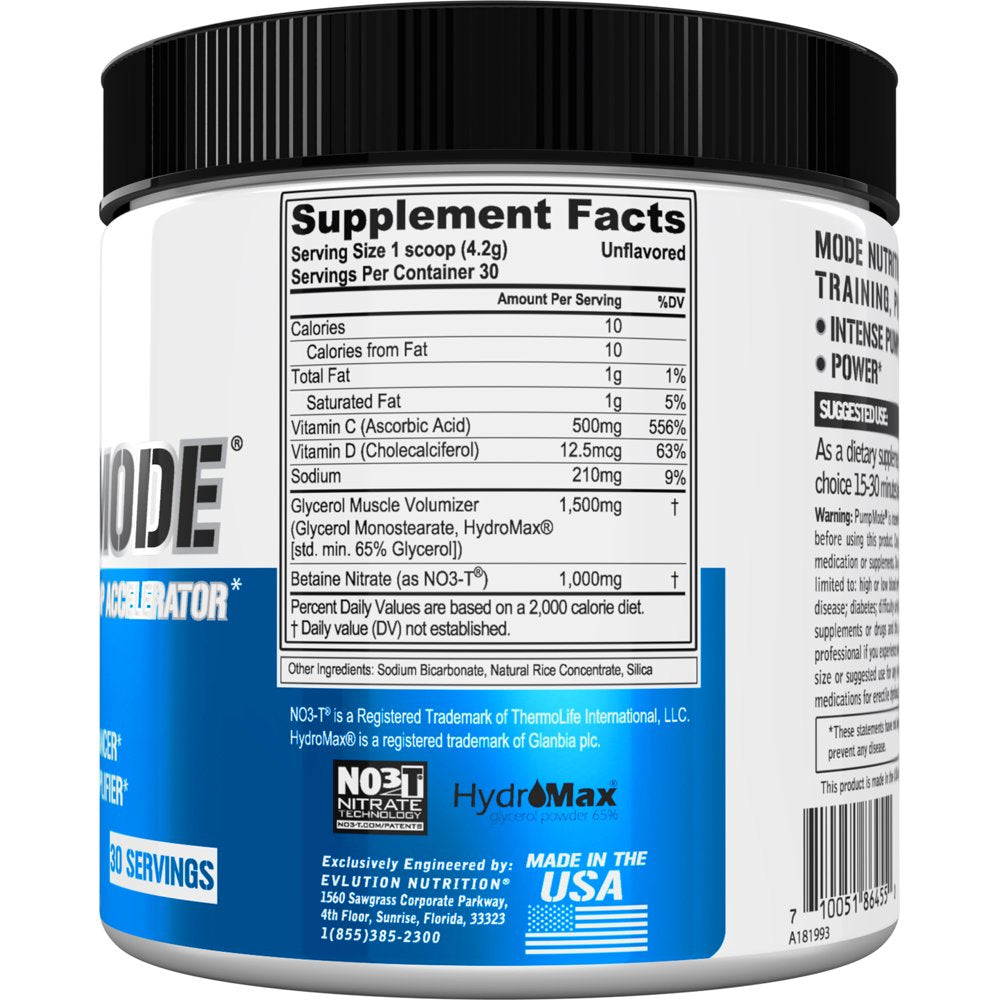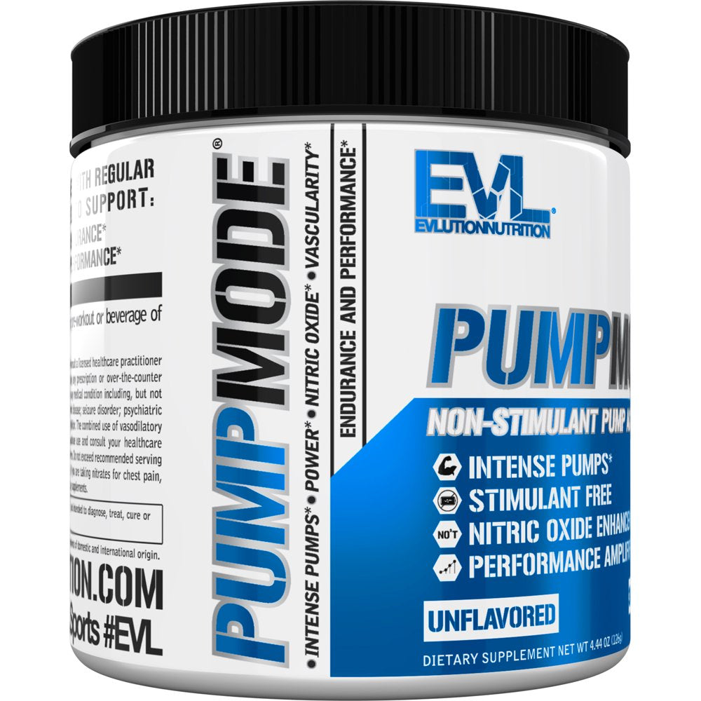 Maximum Strength Nitric Oxide Booster Supplement - Evlution Nutrition Pump Mode Powder 30 Servings (Unflavored)