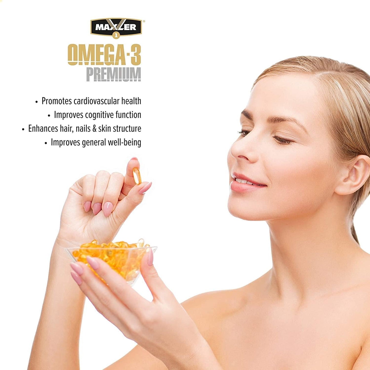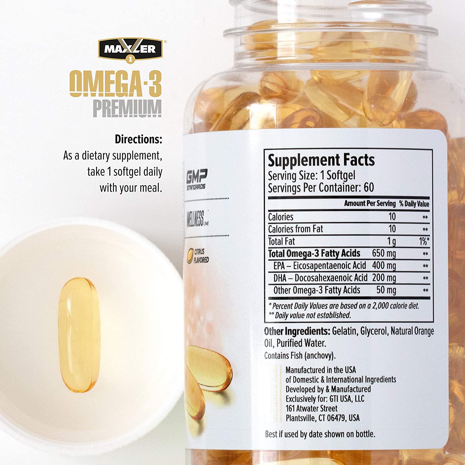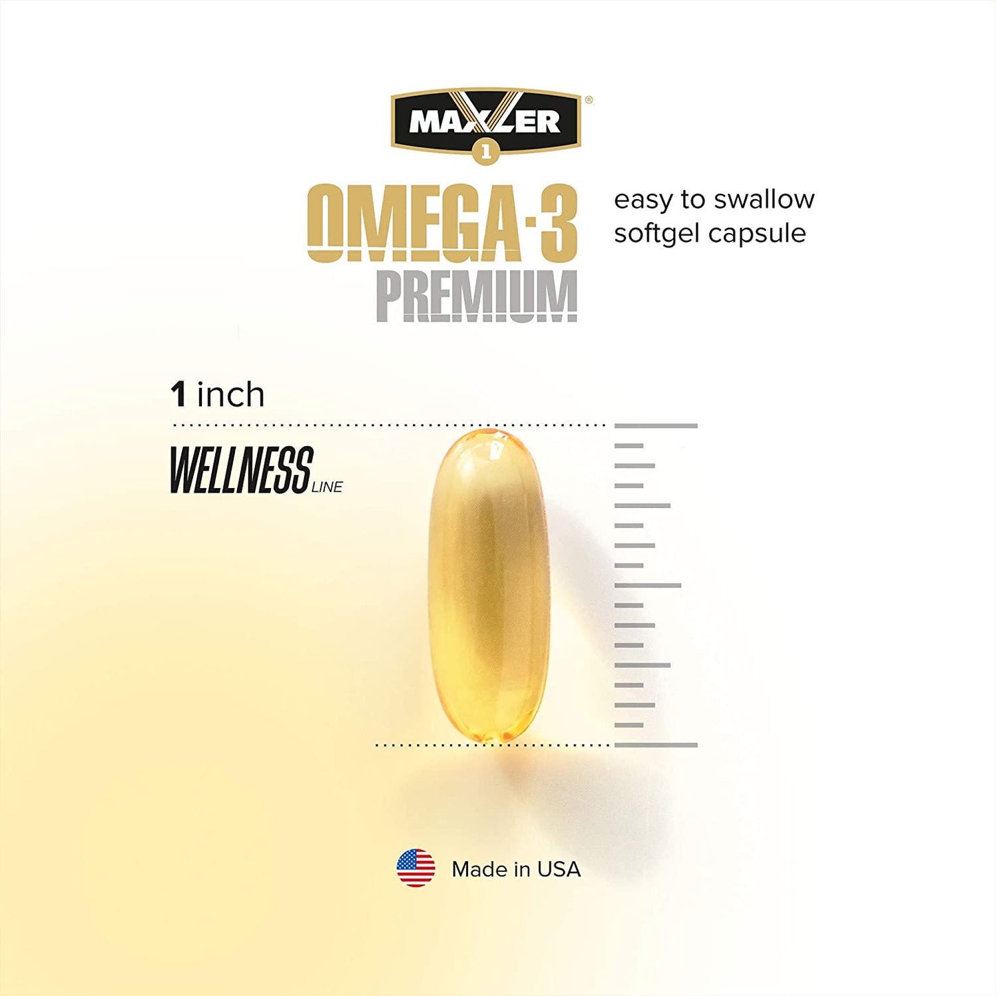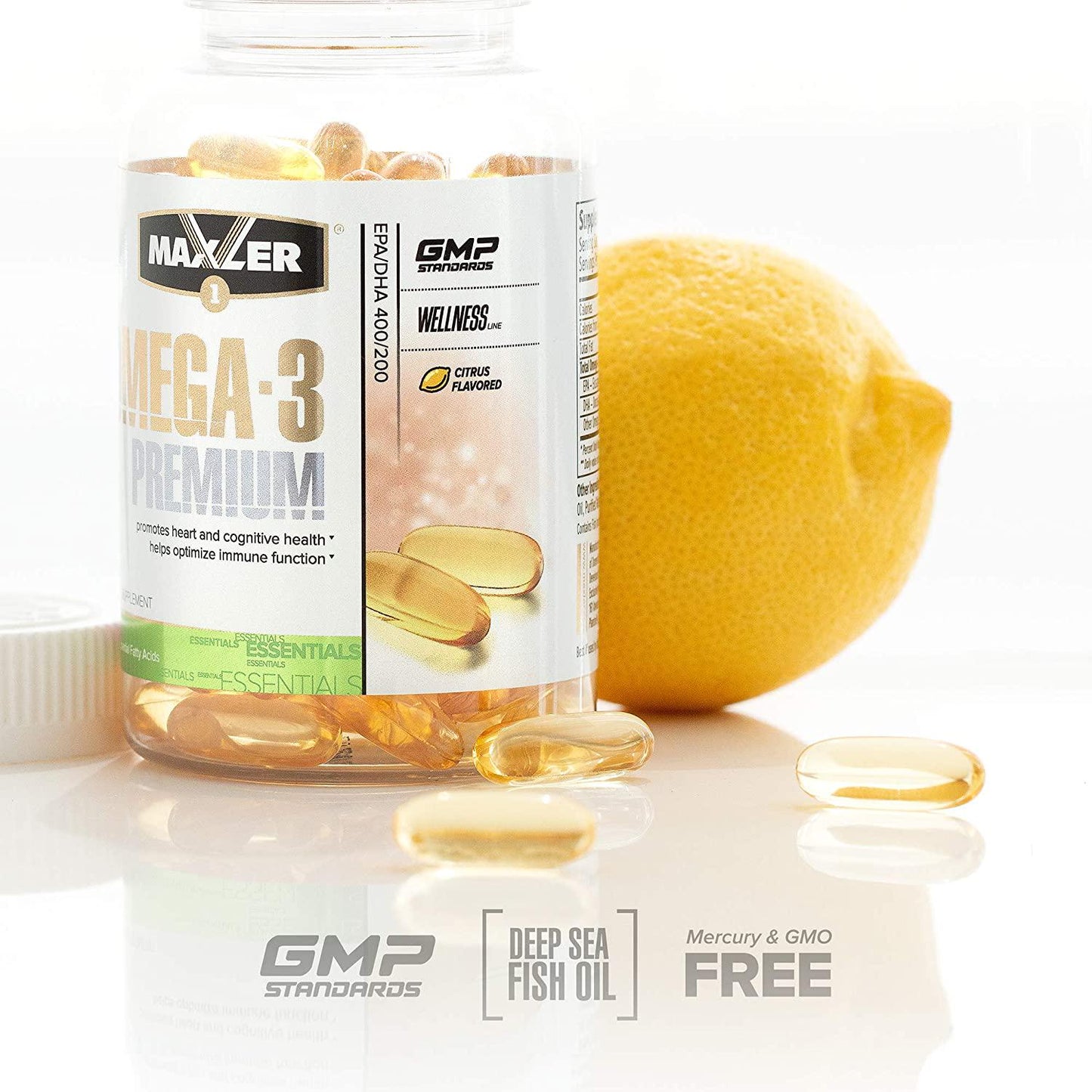Maxler Omega-3 Premium - Omega 3 Fish Oil 1000 mg Capsules - Brain and Heart Health Fish Oil Omega 3 Supplement with Lemon Flavor - High EPA DHA Supplements (400&200 mg) - 60 High Potent Softgels
