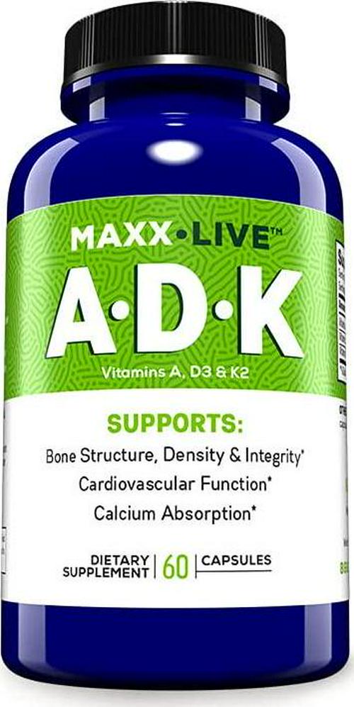 MD Life ADK Vitamins A, D3 & K2 is a physician-formulated dietary supplement designed to promote strong bone structure and cardiovascular health. Each gluten-free vegetarian capsule contains 5,000 IU of Vitamin A (as Retinyl Palmitate), 500 mcg of Vitamin K2, and 5,000 IU of Vitamin D3 (as Cholecalciferol). This unique combination helps support calcium absorption which is crucial for strong bone structure and density. Our ADK Vitamins A, D3 & K2 may also improve cardiovascular function.Start maximizing your cardiovascular and bone health with MD Life ADK Vitamins A, D3 & K2 today.