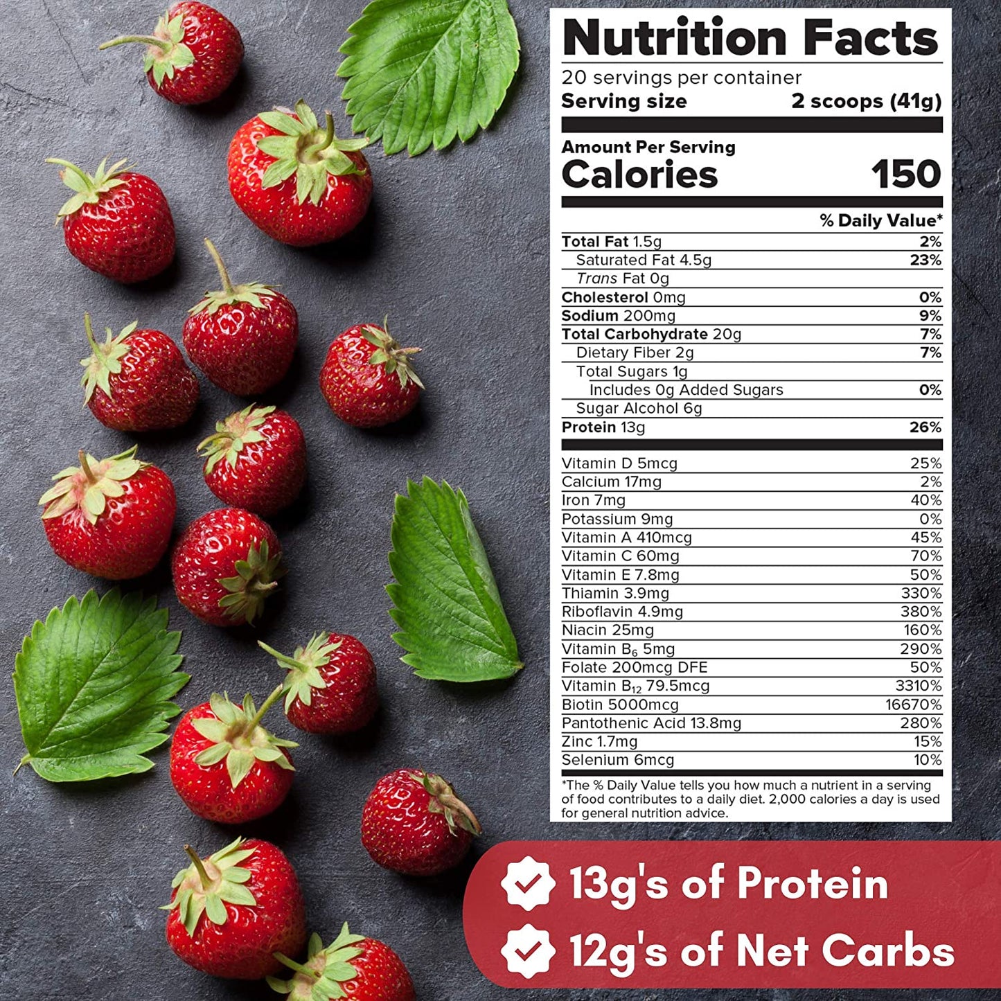 REBUILD MUSCLE TISSUE AFTER WORKOUTS EACH SERVING CONTAINS 13-Gs OF VEGAN STRAWBERRY PROTEIN: