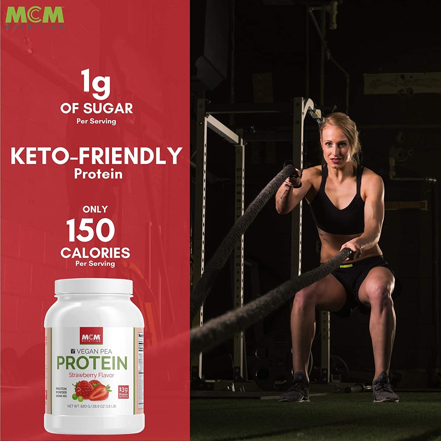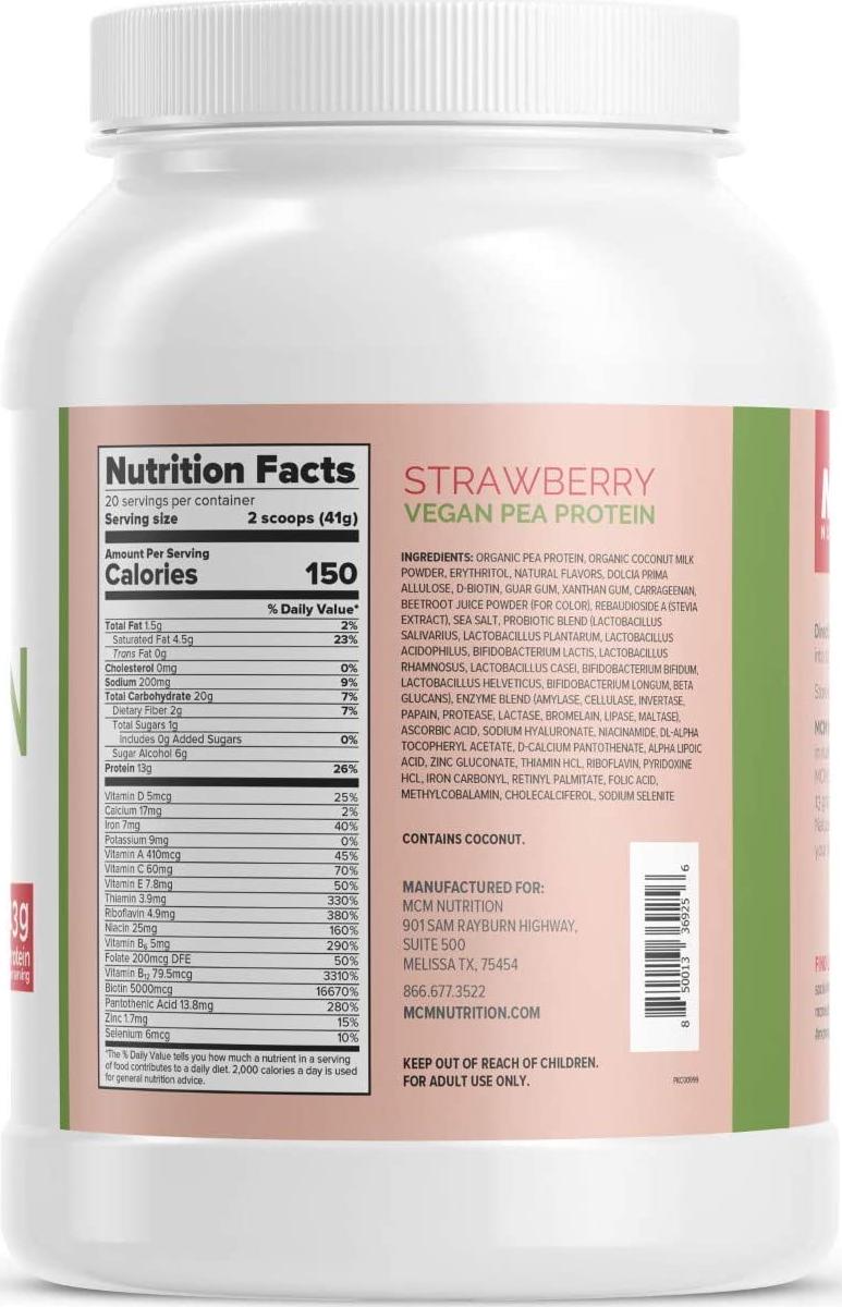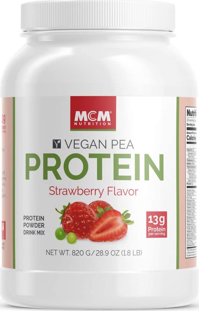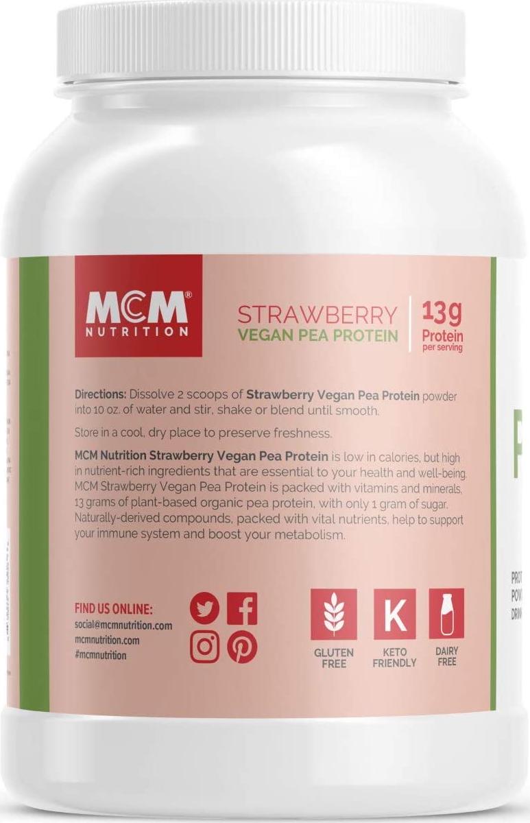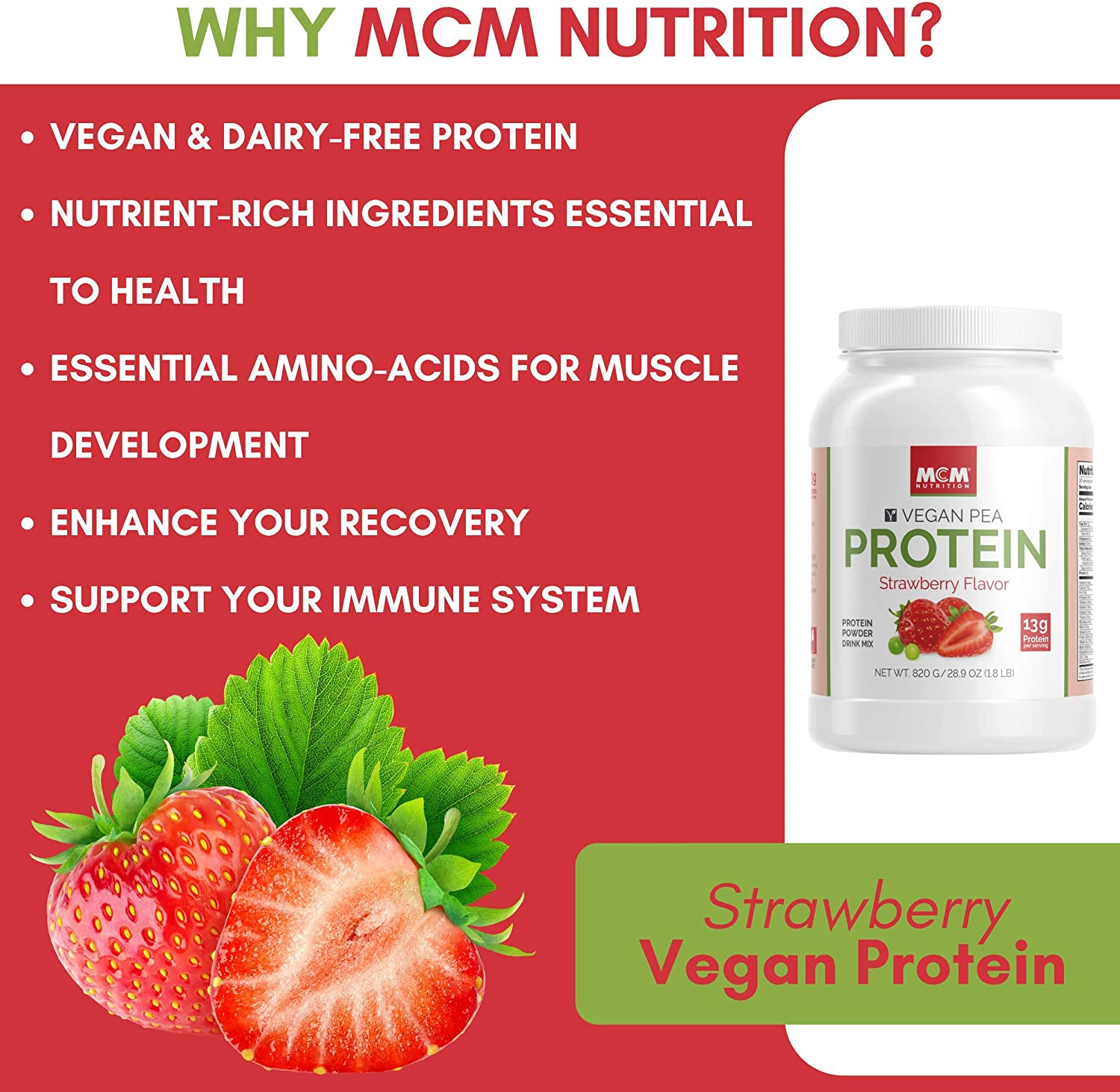 MCM Nutrition Vegan Protein Powder (Strawberry Flavor) - Non-Dairy and Non-Gluten Plant Based Protein Powder Delicious, Vegan Protein Shake with Pea Protein (1.8 LB) (20 Servings)