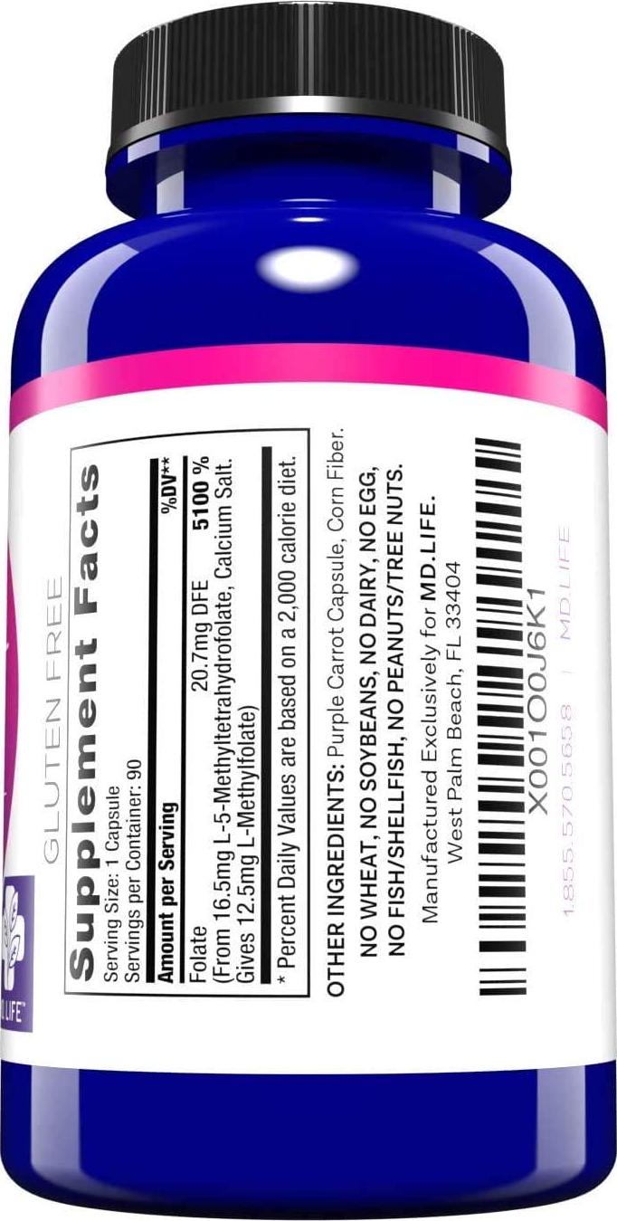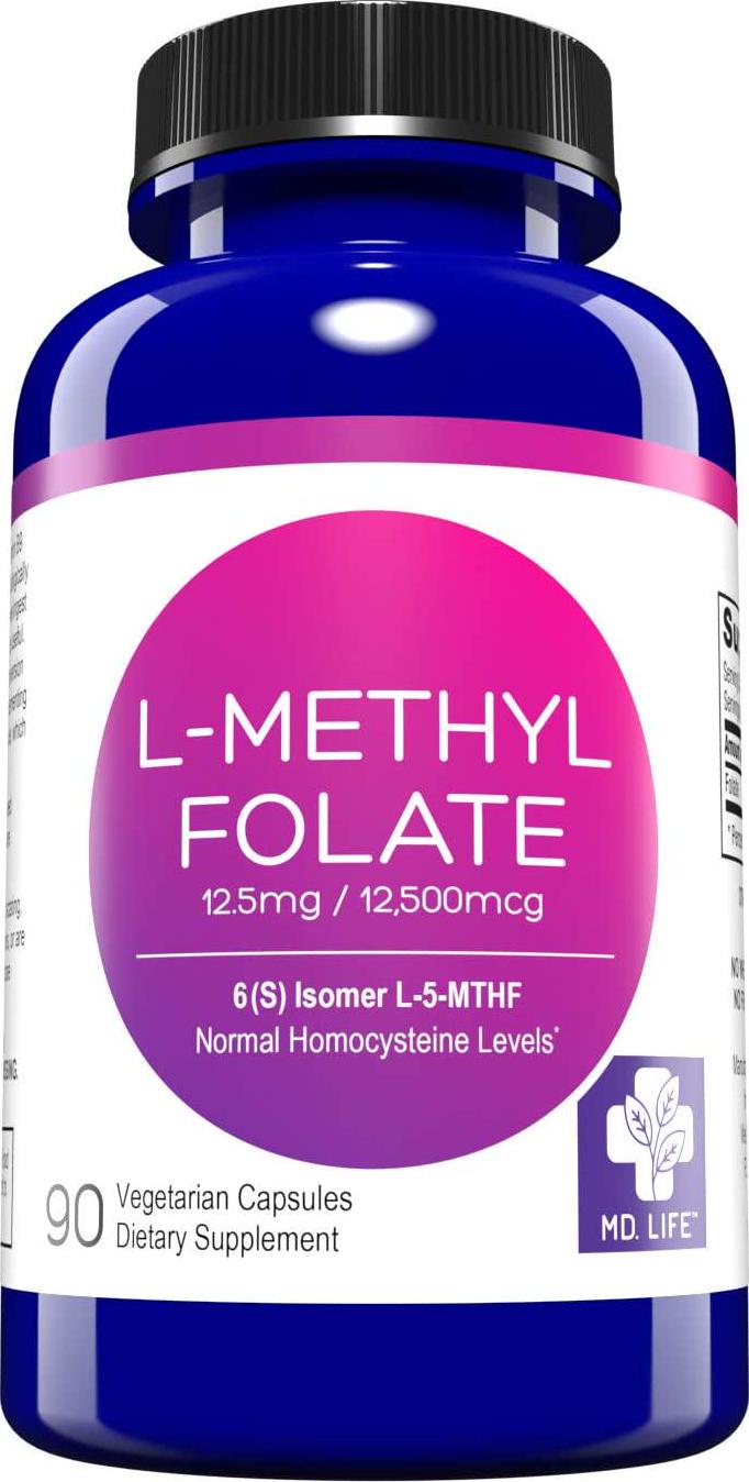 MD.LIFE 5-MTHF L-Methylfolate 12.5 MG Professional Strength Active Folate 90 Capsules (90)