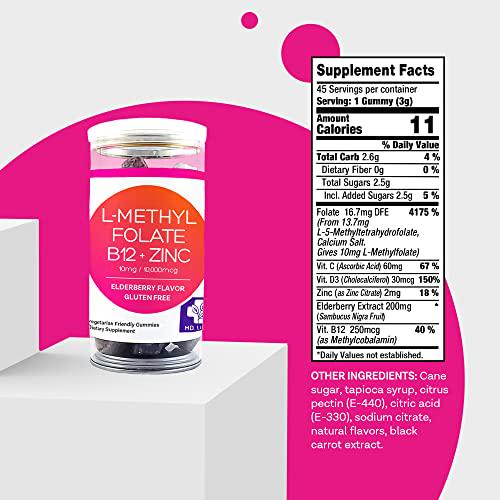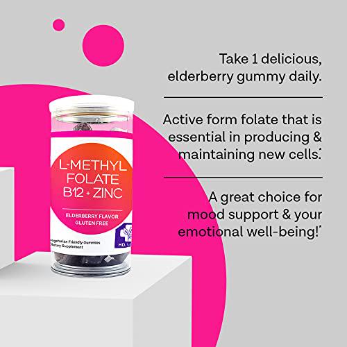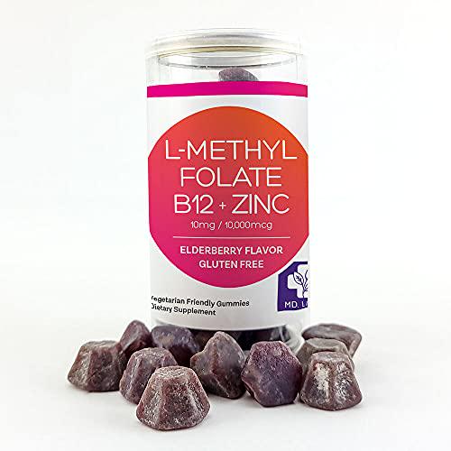 ACTIVE FOLATE GUMMIES THAT WORKS MD Lifes L-Methylfolate 10mg delicious raspberry gummies contains the ingredients necessary for your body to properly utilize folic acid, also known as a complex B9 vitamin. Un folic acid, the synthetic form of vitamin B9, methylfolate is the already converted form of folate people can easily use without the need of the MTHR enzyme. * REPAIR AND SYNTHESIS Methylfolate 10mg, the most active form, is essential in the production and maintenance of new cells. Over half of the United States may have difficulty converting folate into its active folate. Many l-methylfolate products contain small amounts. We offer a wide range of potent doses. This l-methylfolate 10 mg dose is our most potent, for a big difference you can see. * BRAIN & MOOD SUPPORT MD Lifes methyl folatye 10mg is a great choice mood support. Sleep, concentration, energy, mood stability and hormone support have been known to assist by methyl folate. Get your dose of daily nutrition in a delightfully chewy gummy with a fruity taste even the pickiest people will enjoy. Made with pectin, a natural soluble fiber found in fruit, pure cane sugar and natural flavors, these gummies are NON-GMO, gluten free, and gelatin free. * BOOST ENERGY AND METABOLISM: Taking B12 vitamins may help to boost energy levels and prevent anemia in those who are deficient. Vitamin B12 (cyanocobalamin) is an essential vitamin involved in energy production, helping the body metabolize the food you eat into a usable form of energy, glucose. B12 is also vital for the formation of healthy red blood cells which help to transport oxygen to vital tissues around the body. * DOCTOR DESIGNED, QUALITY ASSURED: MD Life L-methylfolate gummies are scientifically formulated for optimal health. Natural, non-GMO and gluten-free, this plant-based supplement is free of harmful chemicals and preservatives. Our products are made here in the USA and in an SQF Level 2 Certified facility.