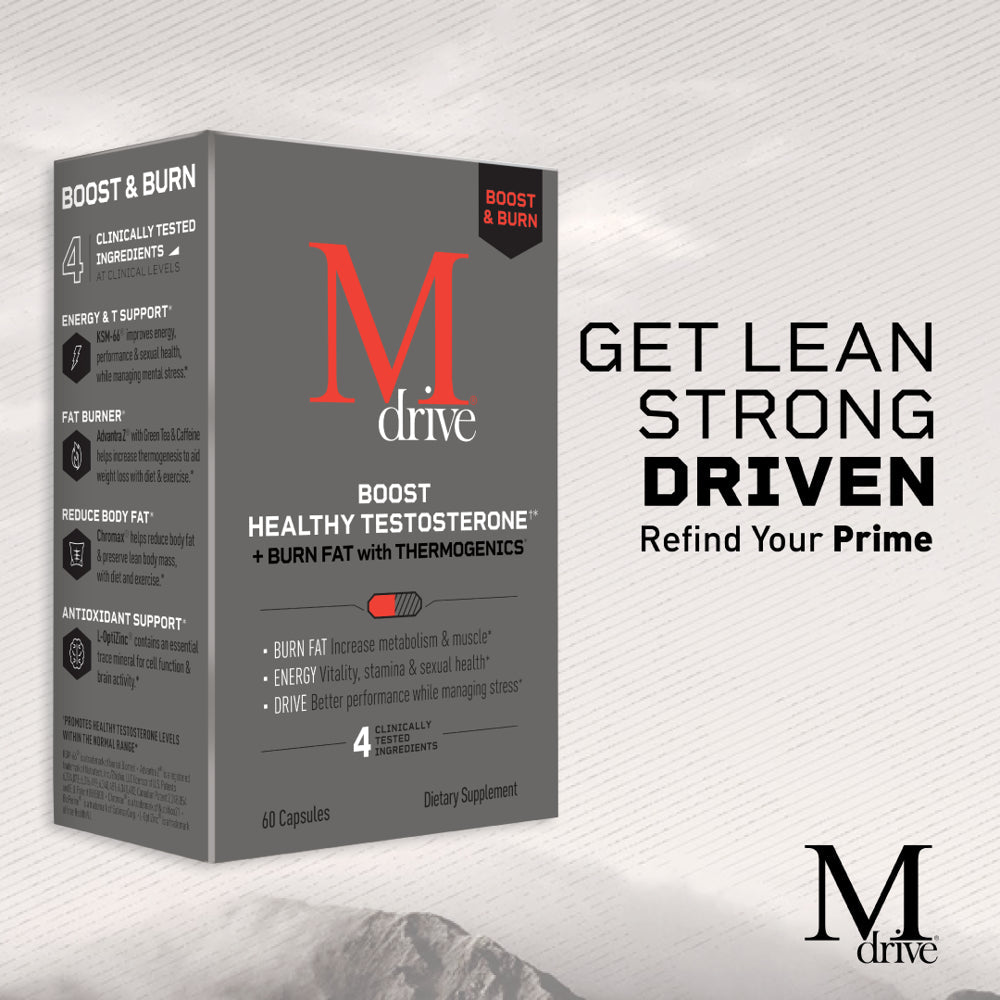 Mdrive Boost and Burn Testosterone Booster and Fat Burner for Men, Natural Energy, Strength, Stress Relief, Lean Muscle with Zinc, KSM-66 Ashwagandha, Cordyceps, Advantra Z, Chromax, 60 Capsules
