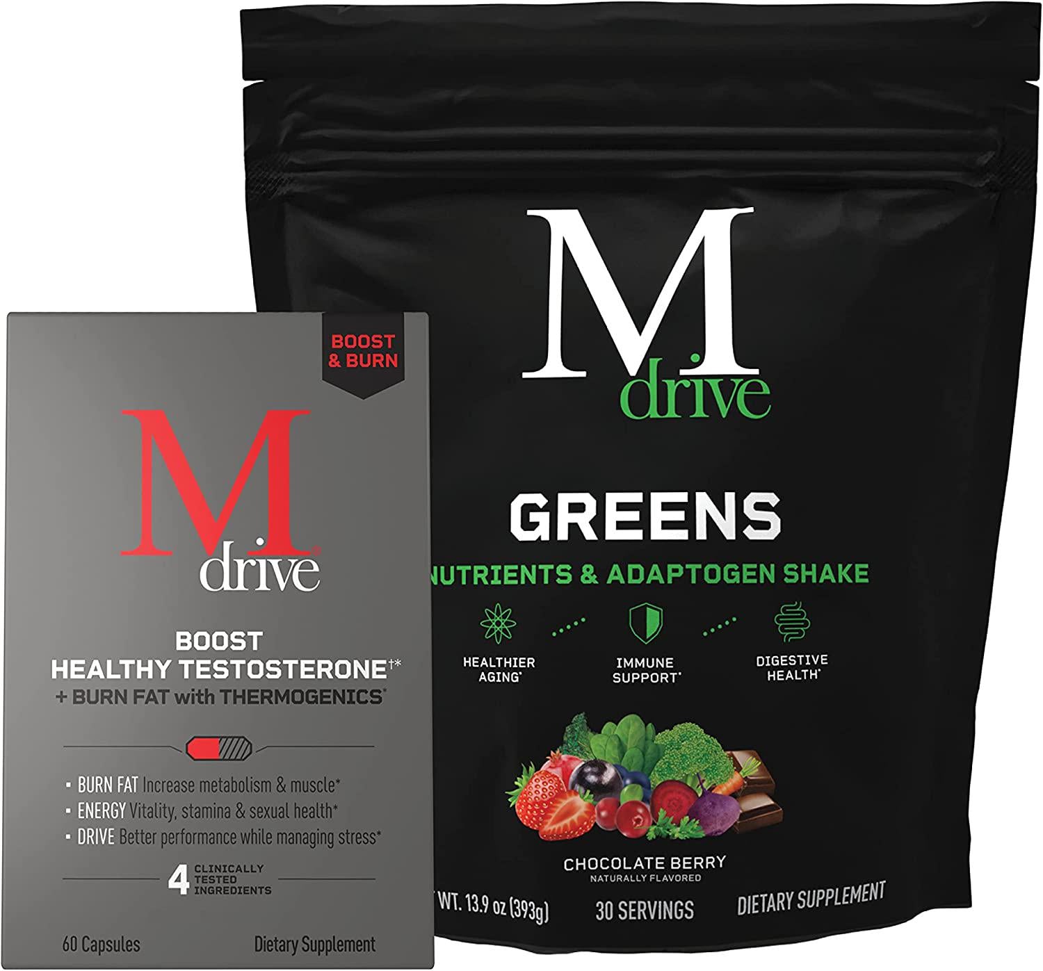 Mdrive Greens Superfood Shake for Men 30 Servings, Support Metabolic and Digestive Health, Immune Support Bundled with Mdrive Boost and Burn 60 Capsules