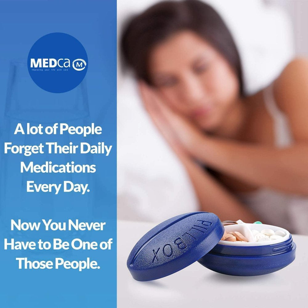- ☆ MEET YOUR NEW DAILY PILL CASE: Our MEDca Round Pill Box fits perfectly into your daily routine. Designed with a removable lid and four surprisingly large compartments you'll see why its so easy to instantly fall in love with this easy to use pill organizer case for all your daily vitamins, supplements and medications. It's convenience really makes your pill planning a breeze!