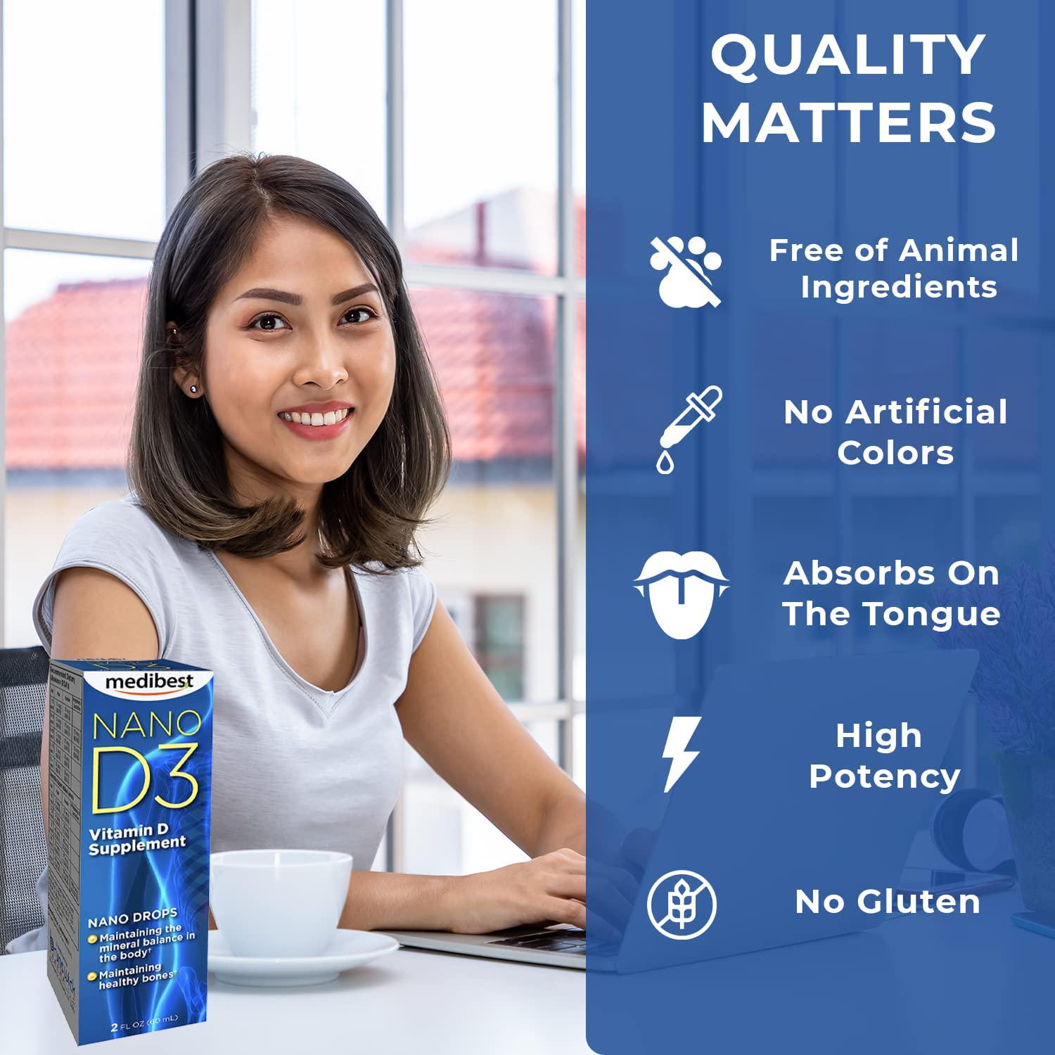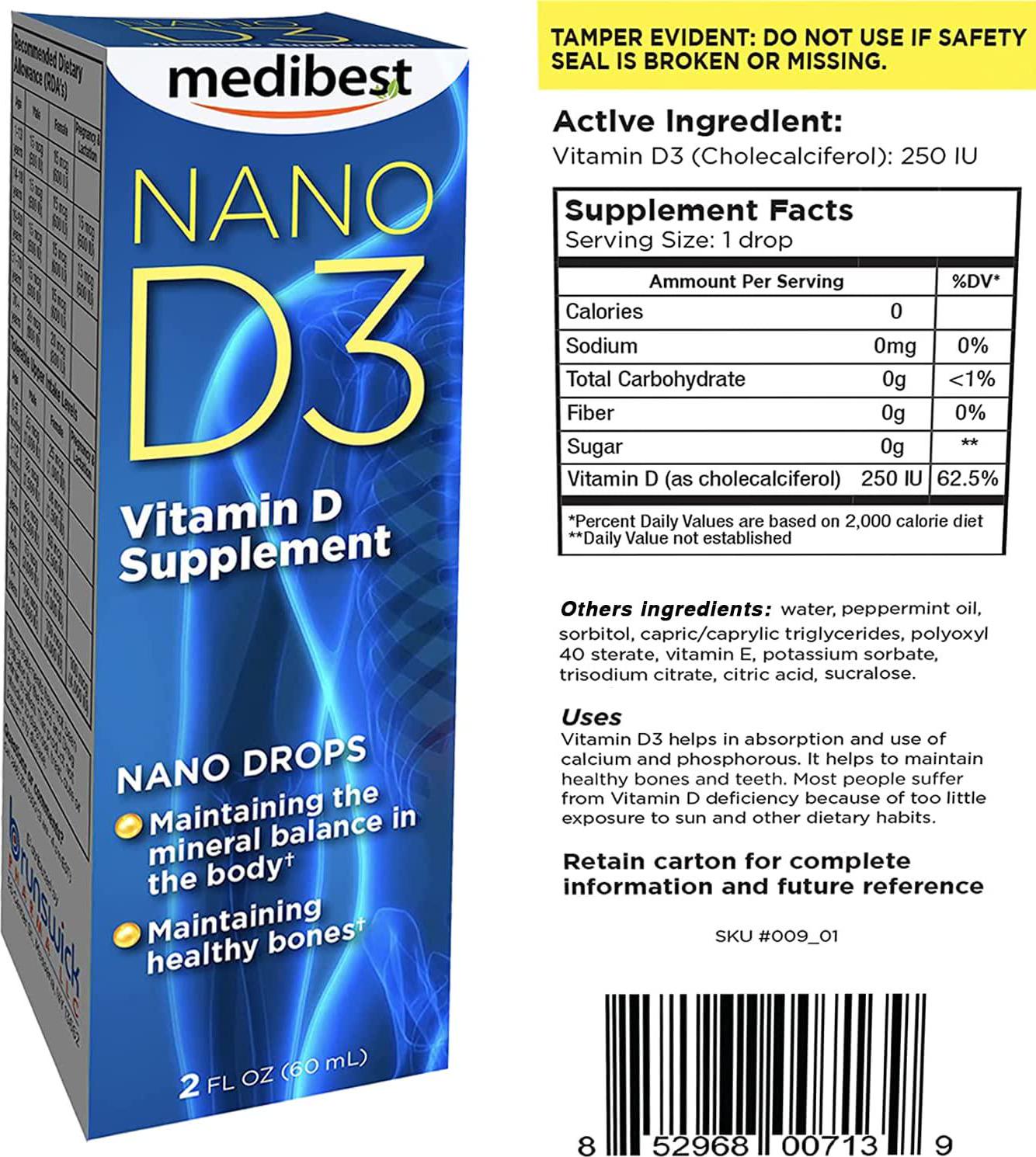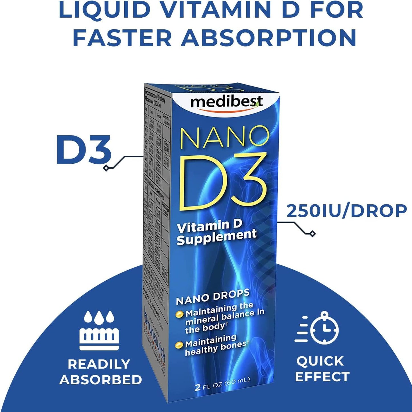 - IMMUNE SUPPORT: MediBest Nano D3 drops provide 250IU of vitamin D3 per drop to help boost the immune system