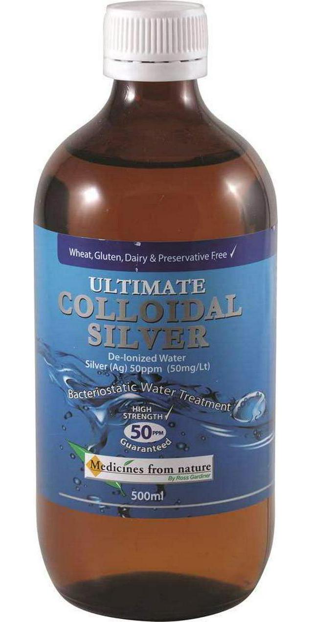Medicines From Nature Colloidal Silver is a high strength ultra-fine particle size bacteriostatic water treatment with a particle count of 50 parts per million and particle size ranging from 0.0001 microns to guarantee effective action. Made from 99.99 percent Pure Silver. Water purity is critical in the Colloidal Silver process. Our water is the purest on the planet after being progressively purified through ten high tech steps as far down as 0.1 microns, excluding even the tiniest microscopic contaminants.