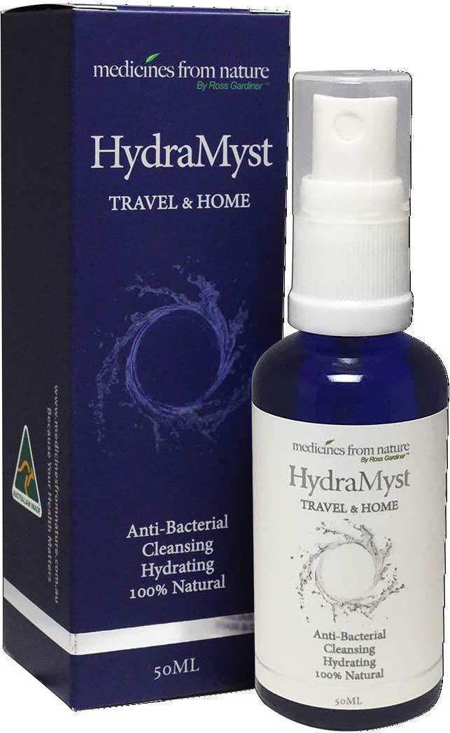 Medicines From Nature HydraMyst is a natural antibacterial spray to hydrate and cleanse the face and hands during travel, commuting or exposure to infection. HydraMyst is a non-scented, non-staining airport approved mist spray that easily fits into a carry on luggage or handbags. HydraMyst can be applied to the face and hands as frequently as required to help your skin remain hydrated and cleansed of germs and bacteria. Protection against germs, bacteria and infection when travelling, commuting or at home.