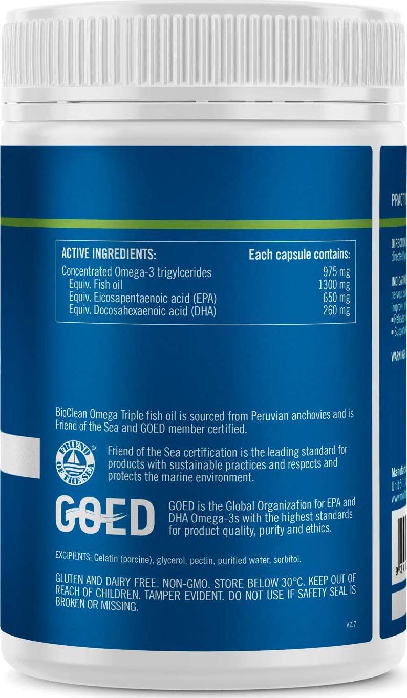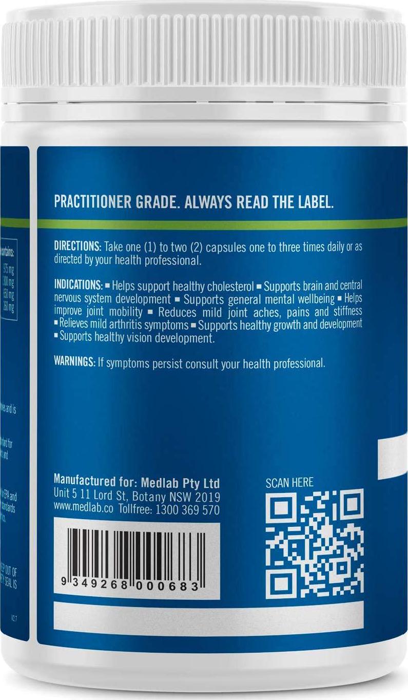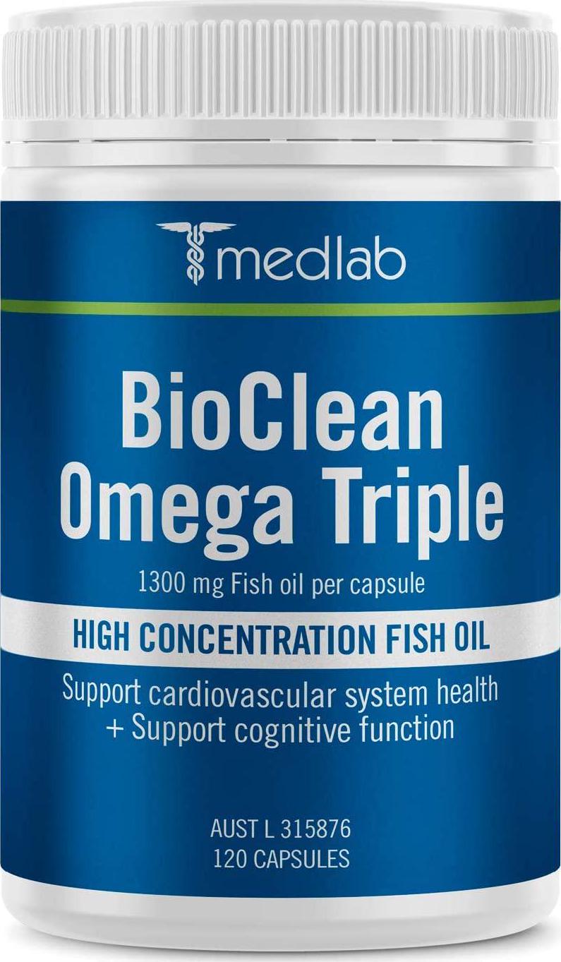 Medlab Bioclean Omega Triple 120 Capsules is a highly concentrated dose of omega-3 essential fatty acids to support optimal health. Our triple strength formulation. Supports healthy brain and central nervous system development. Helps to improve joint mobility. Reduces mild joint aches and pains and stiffness. Relieves mild arthritis symptoms.