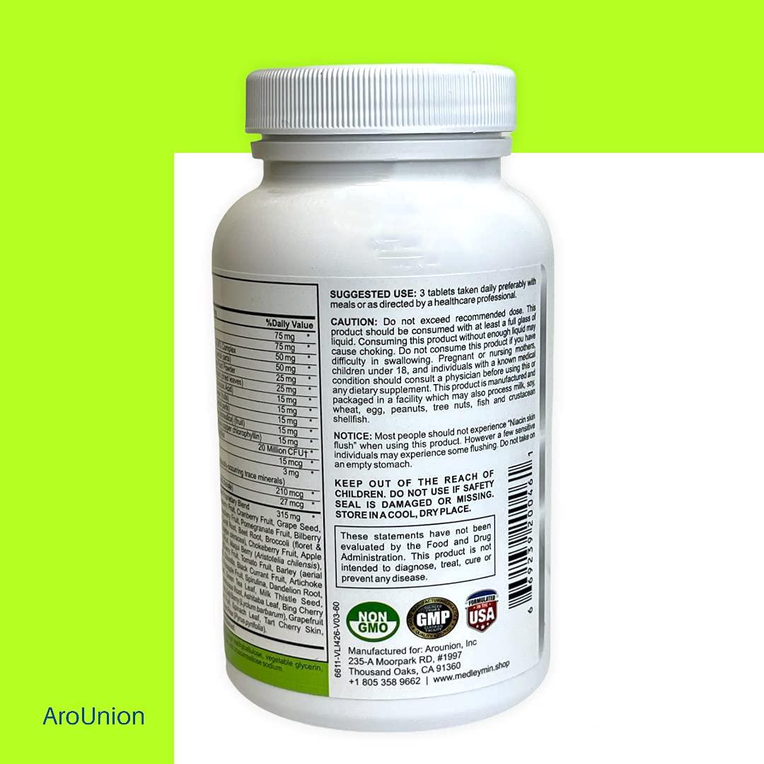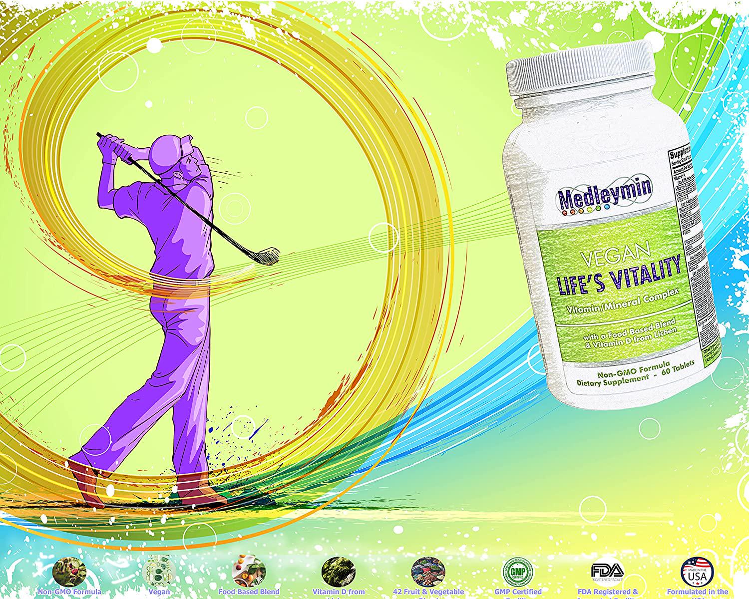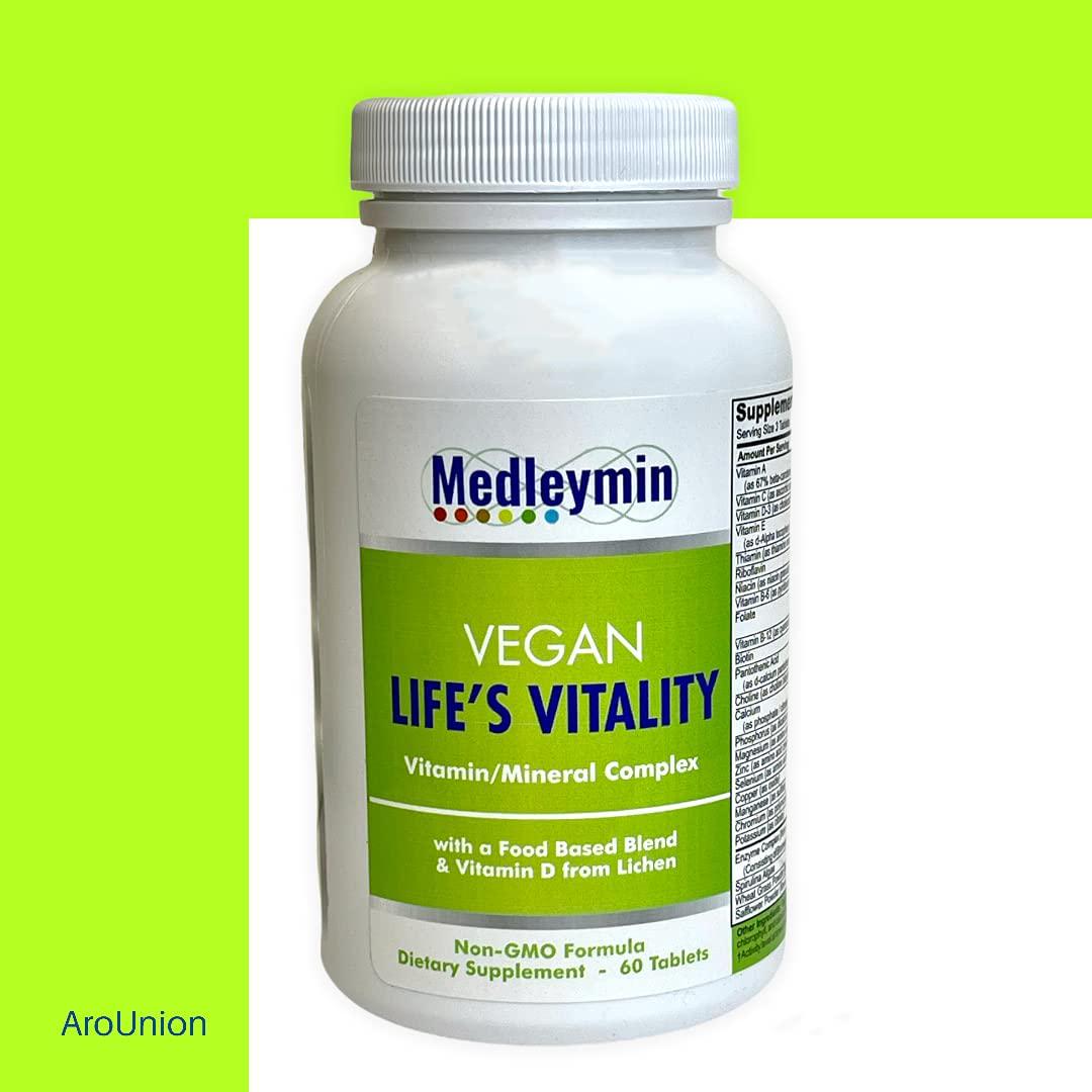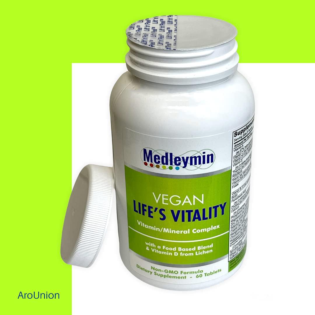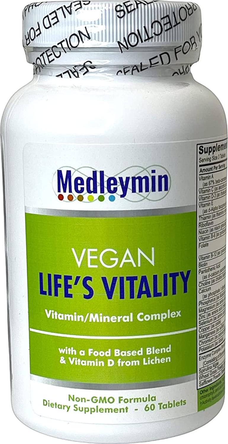 Medleymin, Life's Vitality, MultiVitamin, Mineral, Supplement with VitaminA,Vitamin B6-B12, Vitamin C, Vitamin D3,Vitamin E, Zinc, Folate, Enzyme Complex and Spirulina Algae, Vegan-Non GMO- Food Based.
