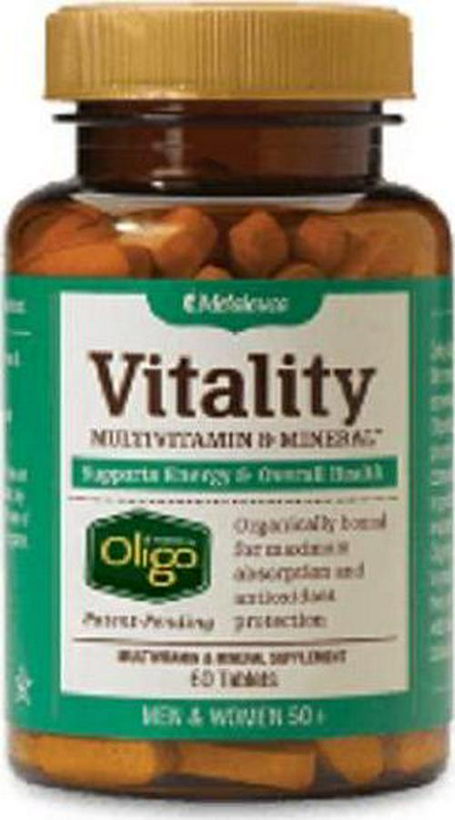 Melaleuca Vitality Multivitamin & Mineral for 50+ Men and Women (60 tablets). Provides vitamins and helps keep nutrients in your body.