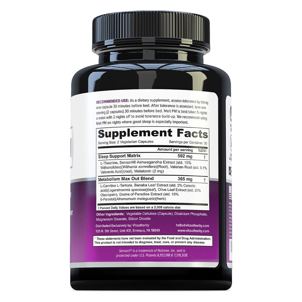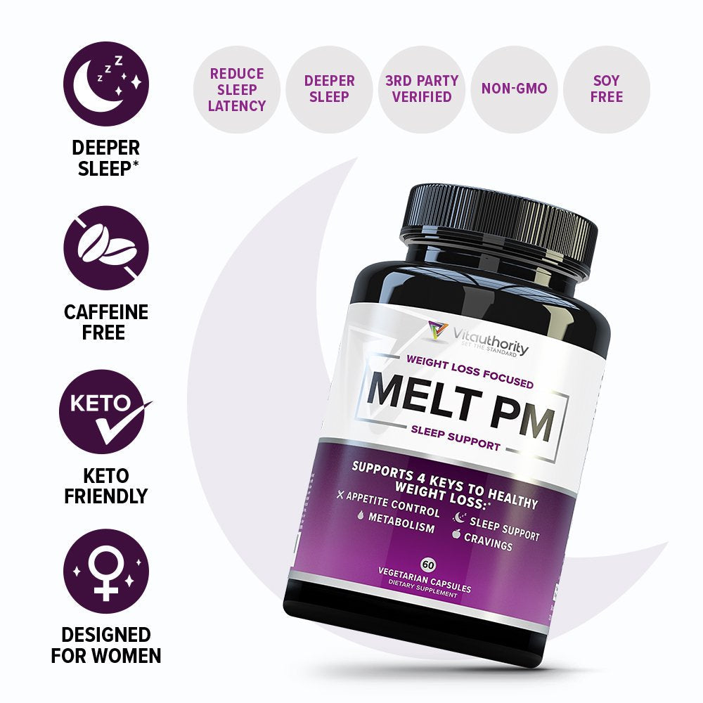 Melt PM Natural Sleep Aid & Weight Loss Pills: Promote More Restful Sleep and Support Appetite plus Metabolism | Ashwagandha and L-Theanine | 60 Capsules
