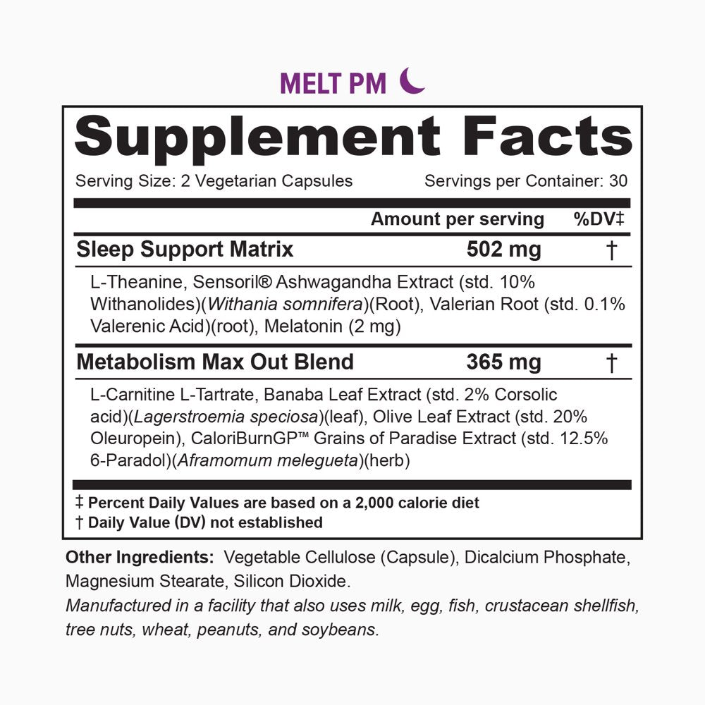 Sleep + Weight Loss Support MELT PM was crafted to help you fall asleep while also supporting your metabolism